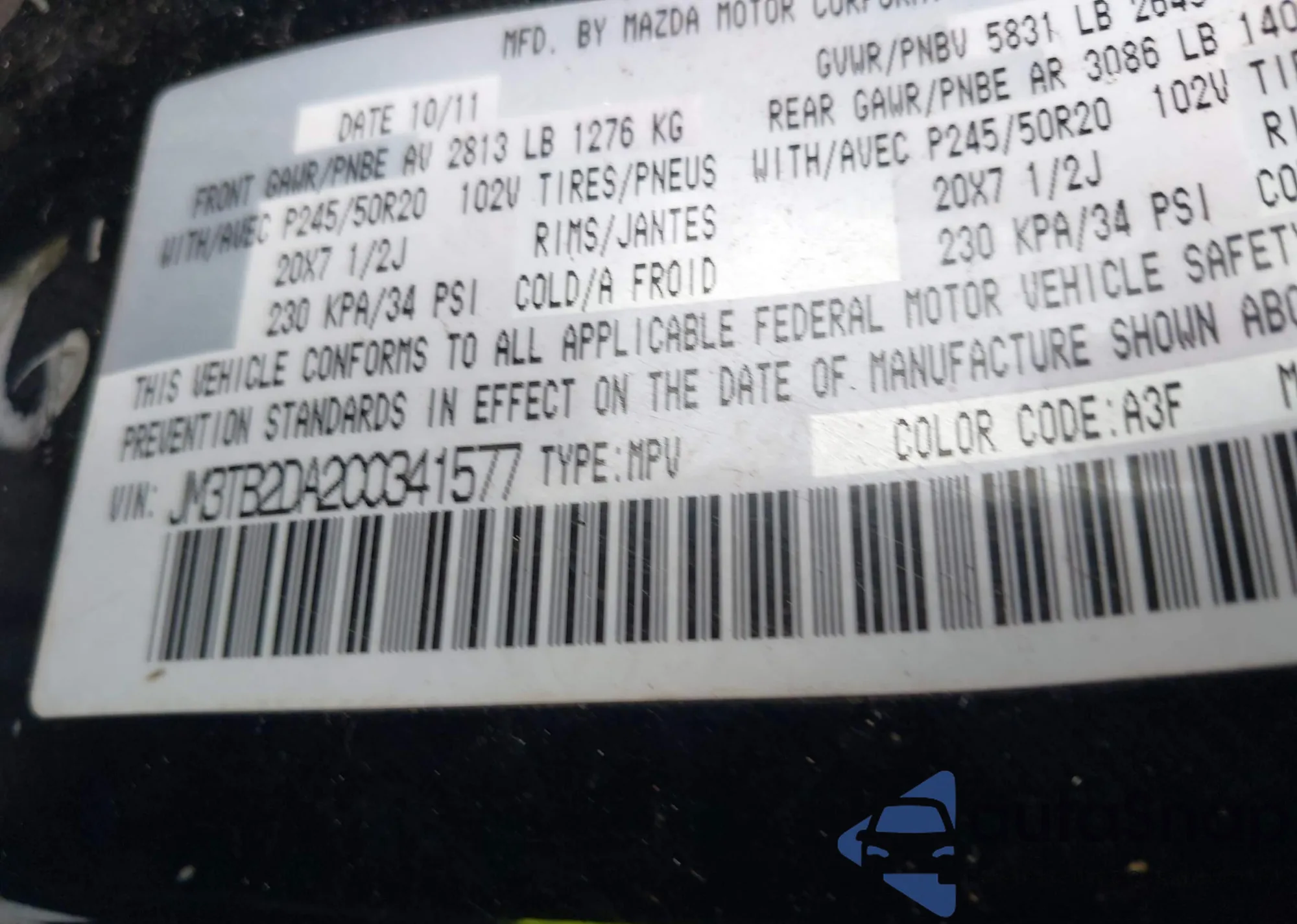 • VIN JM3TB2DA2C0341577