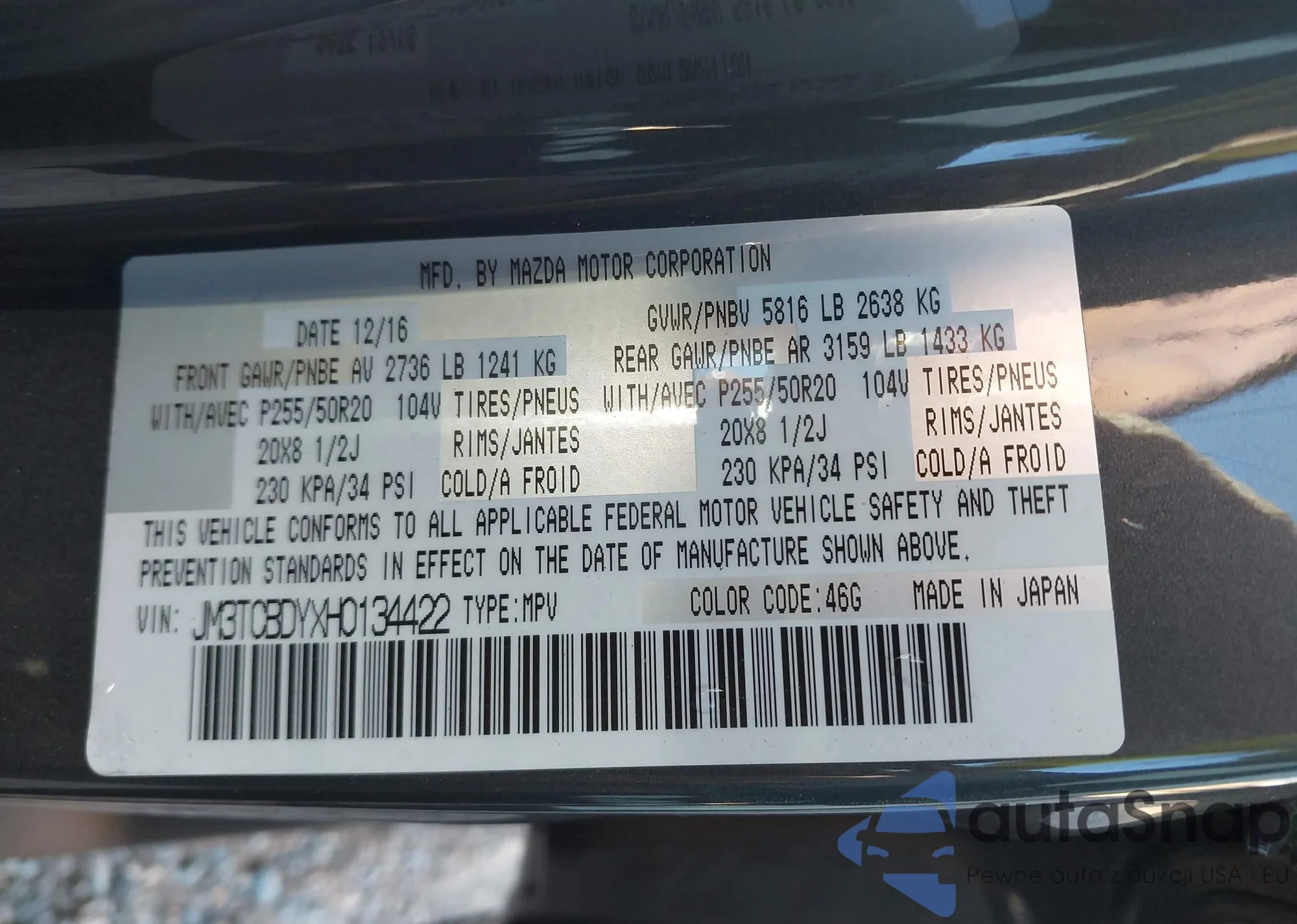 LOT: 43437971 VIN: JM3TCBDYXH0134422