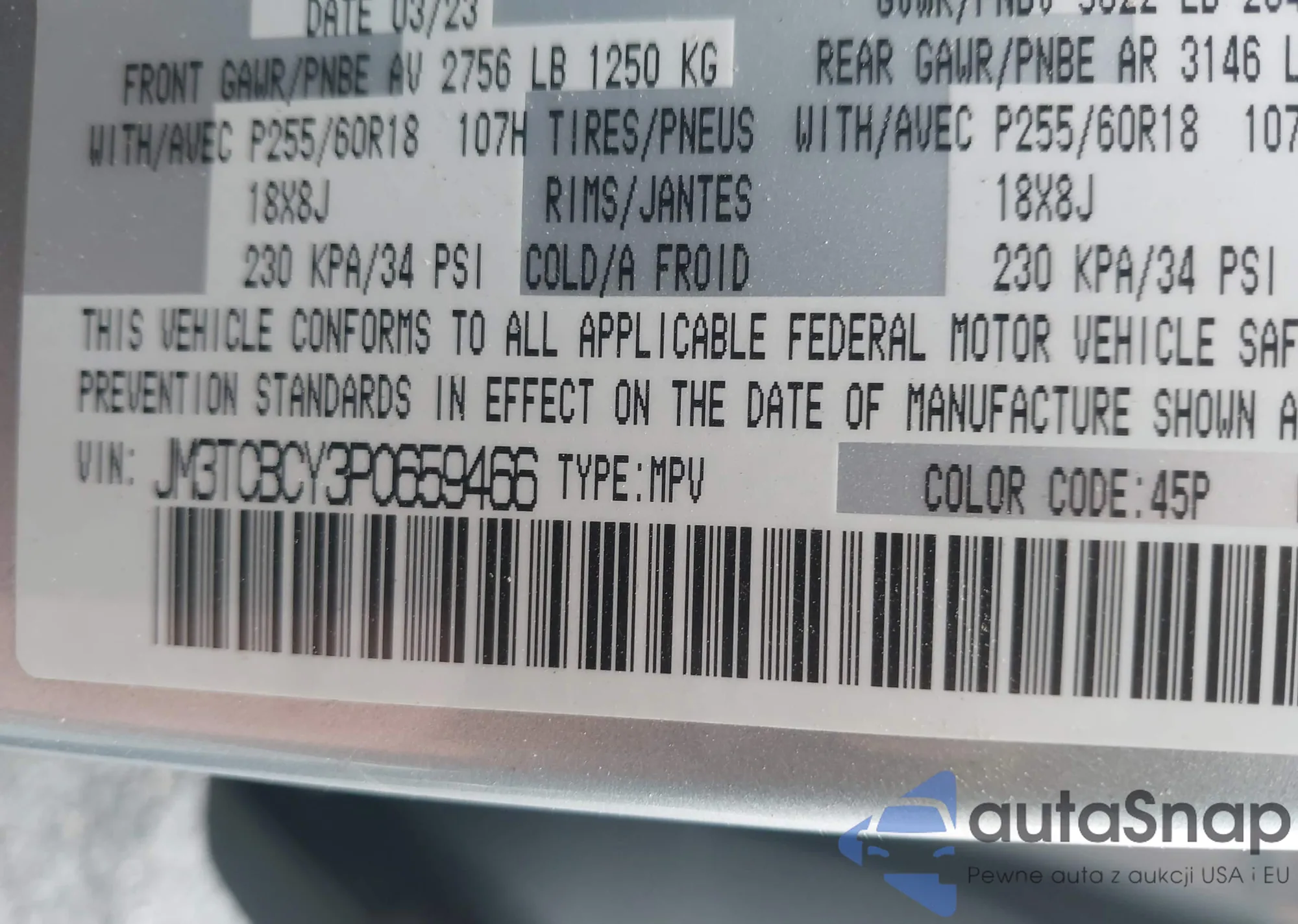 LOT: 44363879 VIN: JM3TCBCY3P0659466