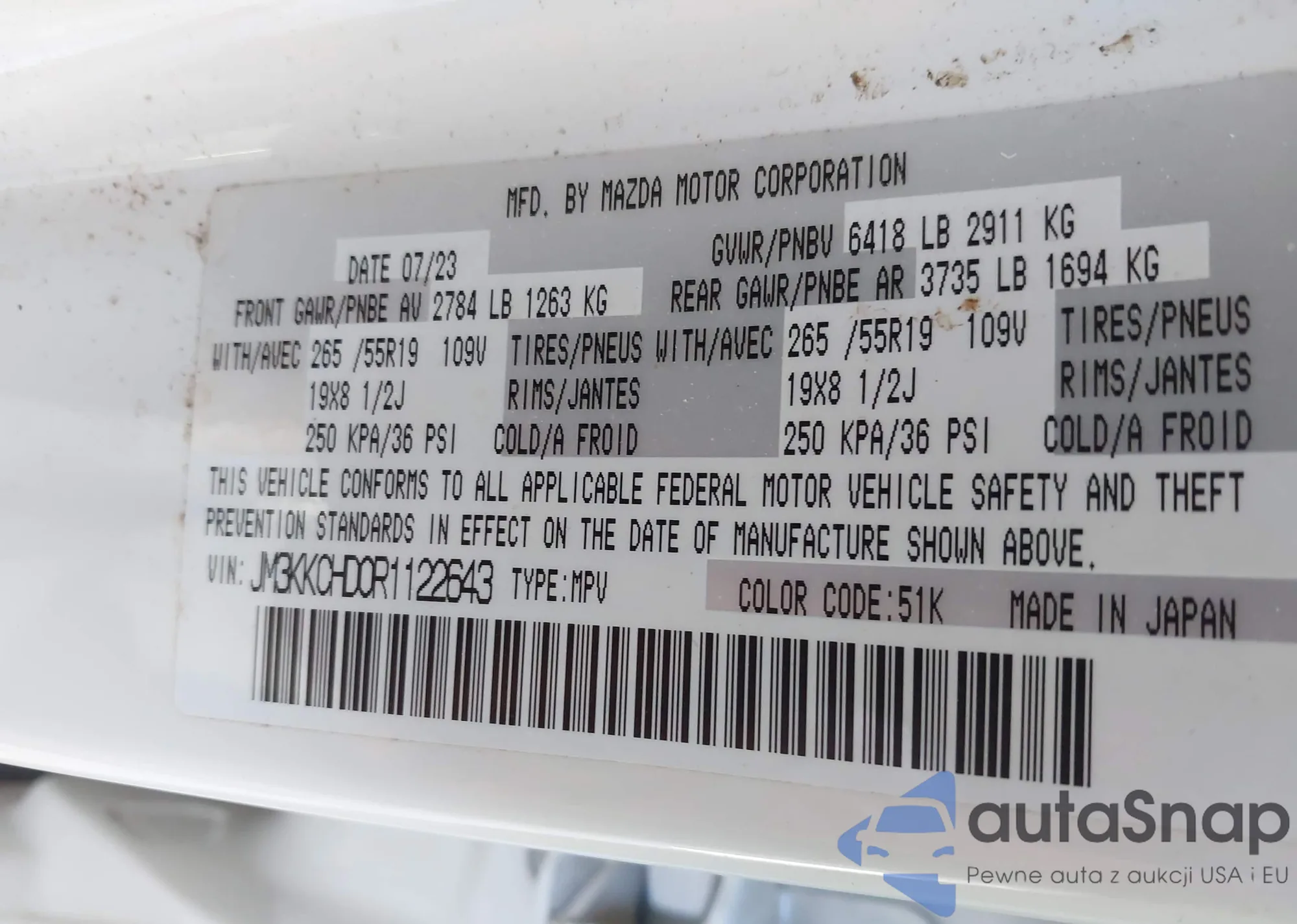 • VIN JM3KKAHDXR1131449