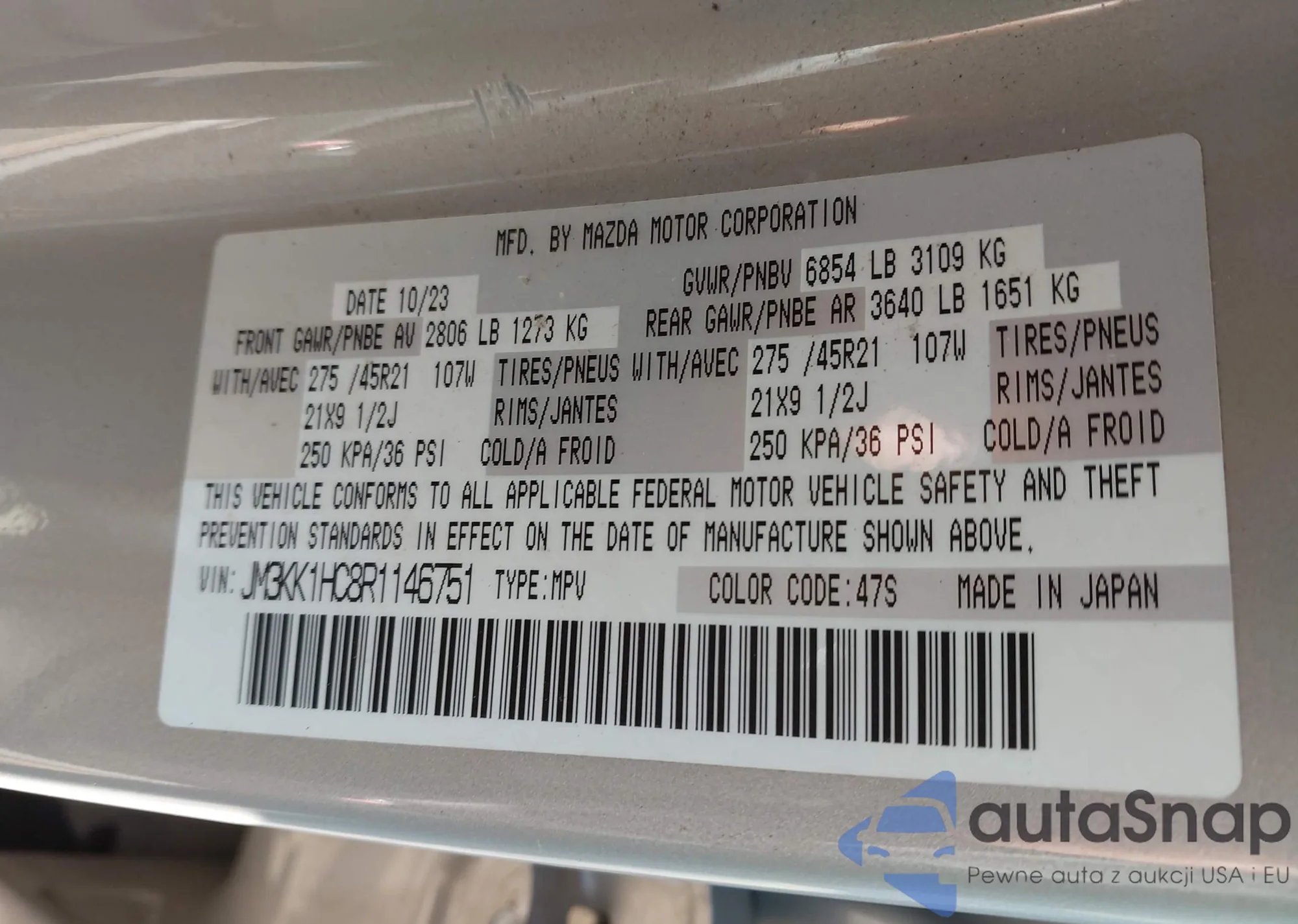 LOT: 43888334 VIN: JM3KK1HC8R1146751