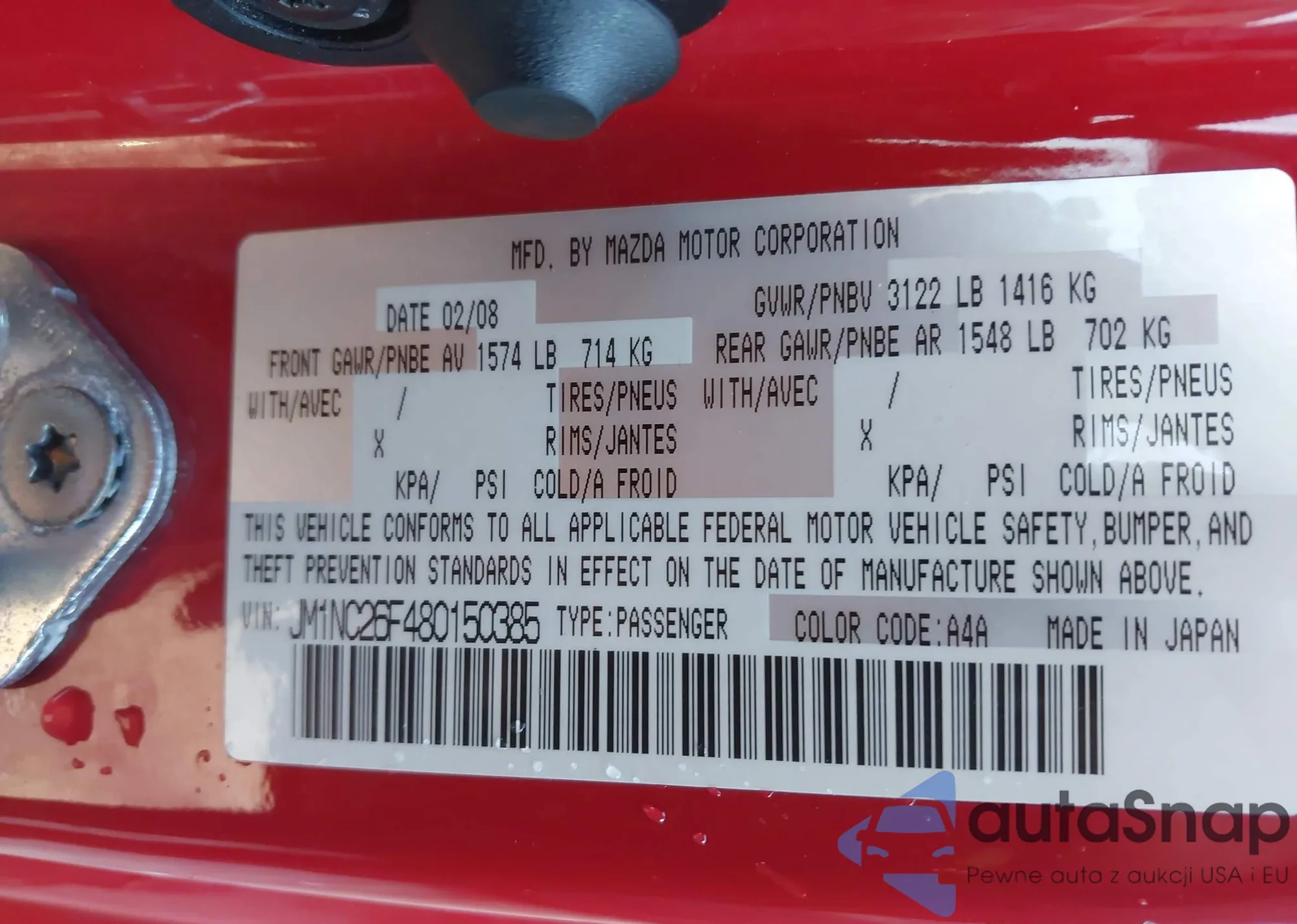 LOT: 44038357 VIN: JM1NC26F480150385