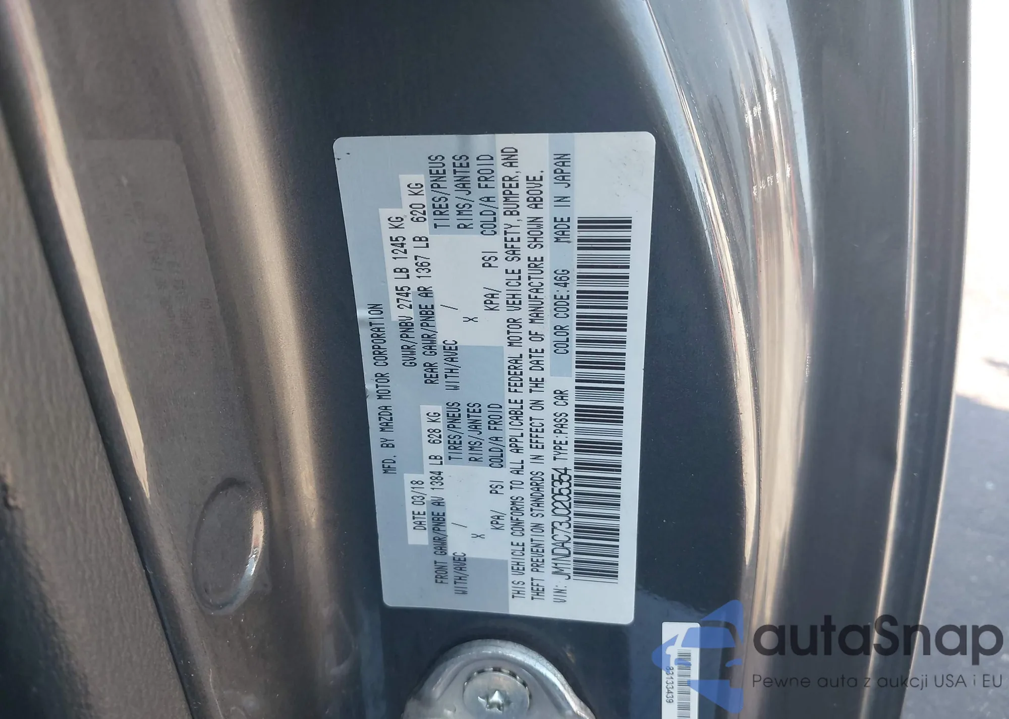 LOT: 43893654 VIN: JM1NDAC73J0205354