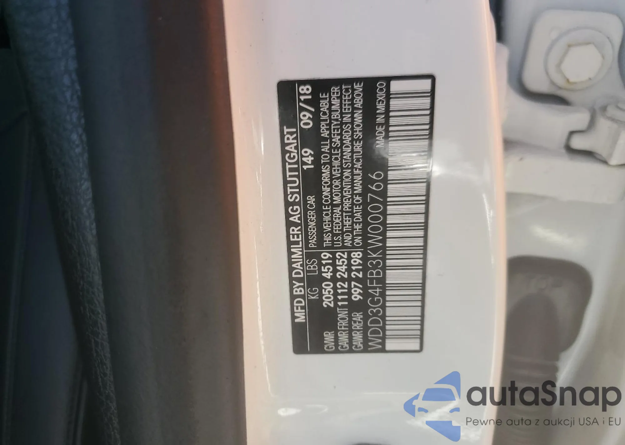 • VIN WDD3G4FB3KW000766