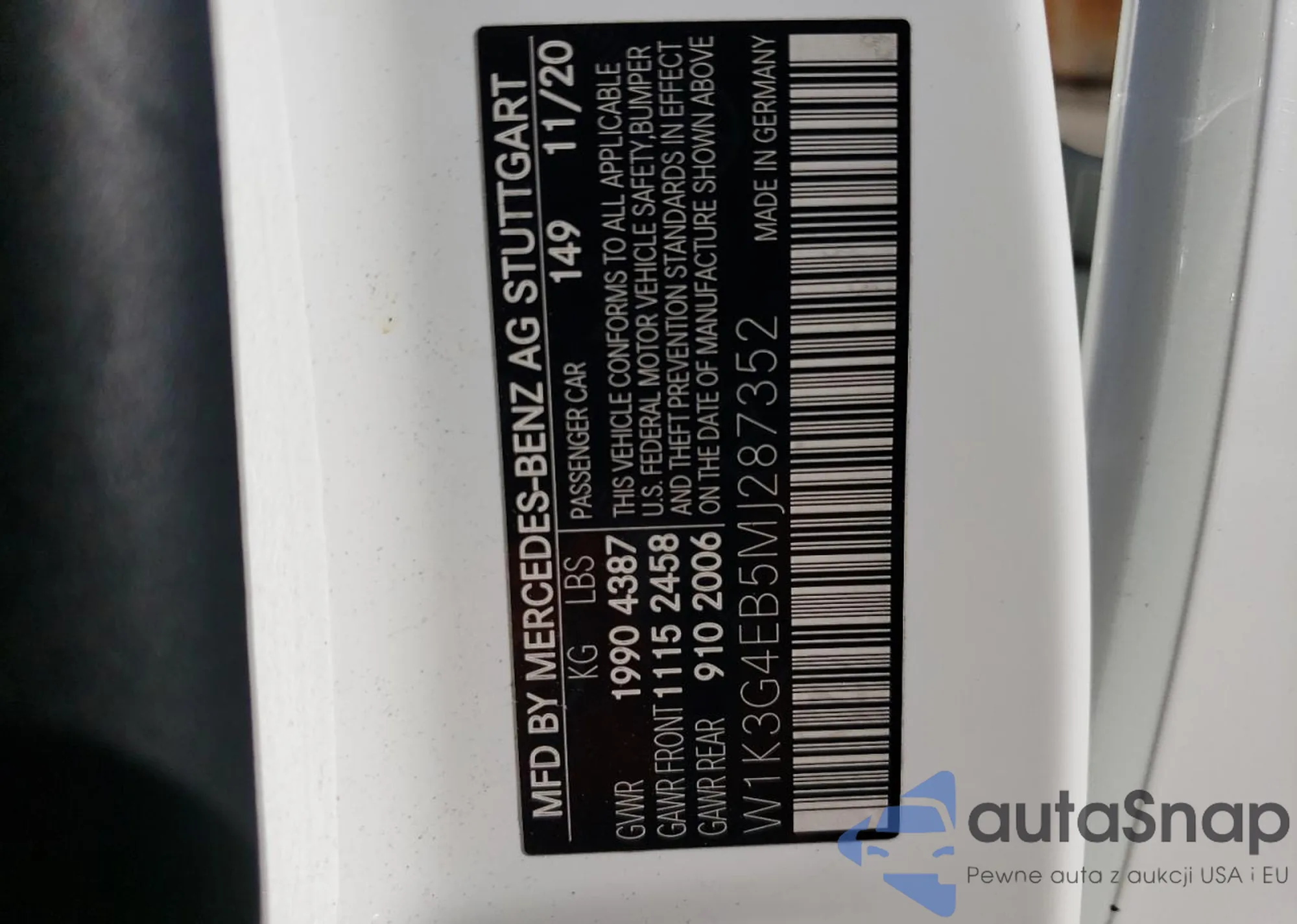 • VIN W1K3G4EB5MJ287352