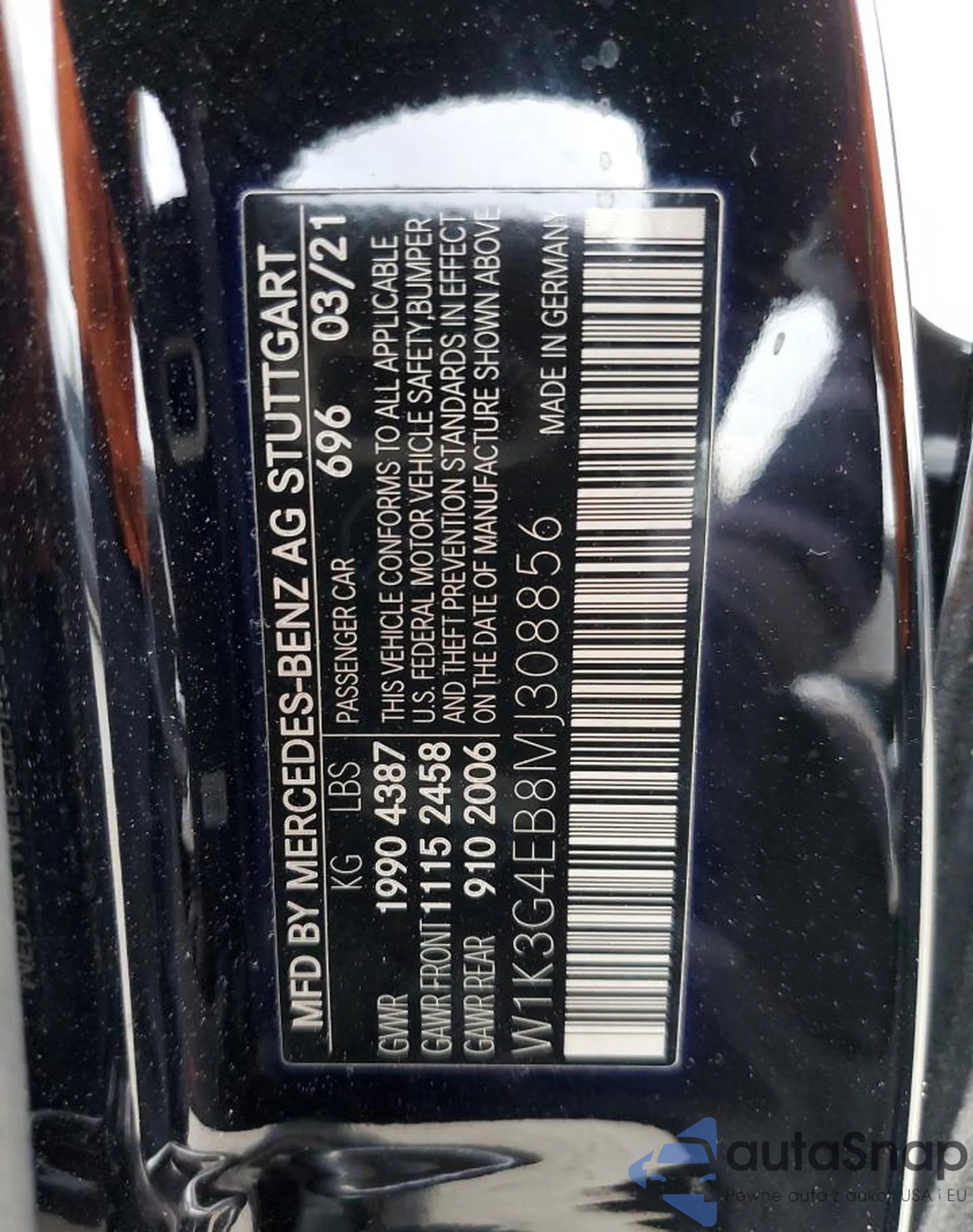 • VIN W1K3G4EB8MJ308856