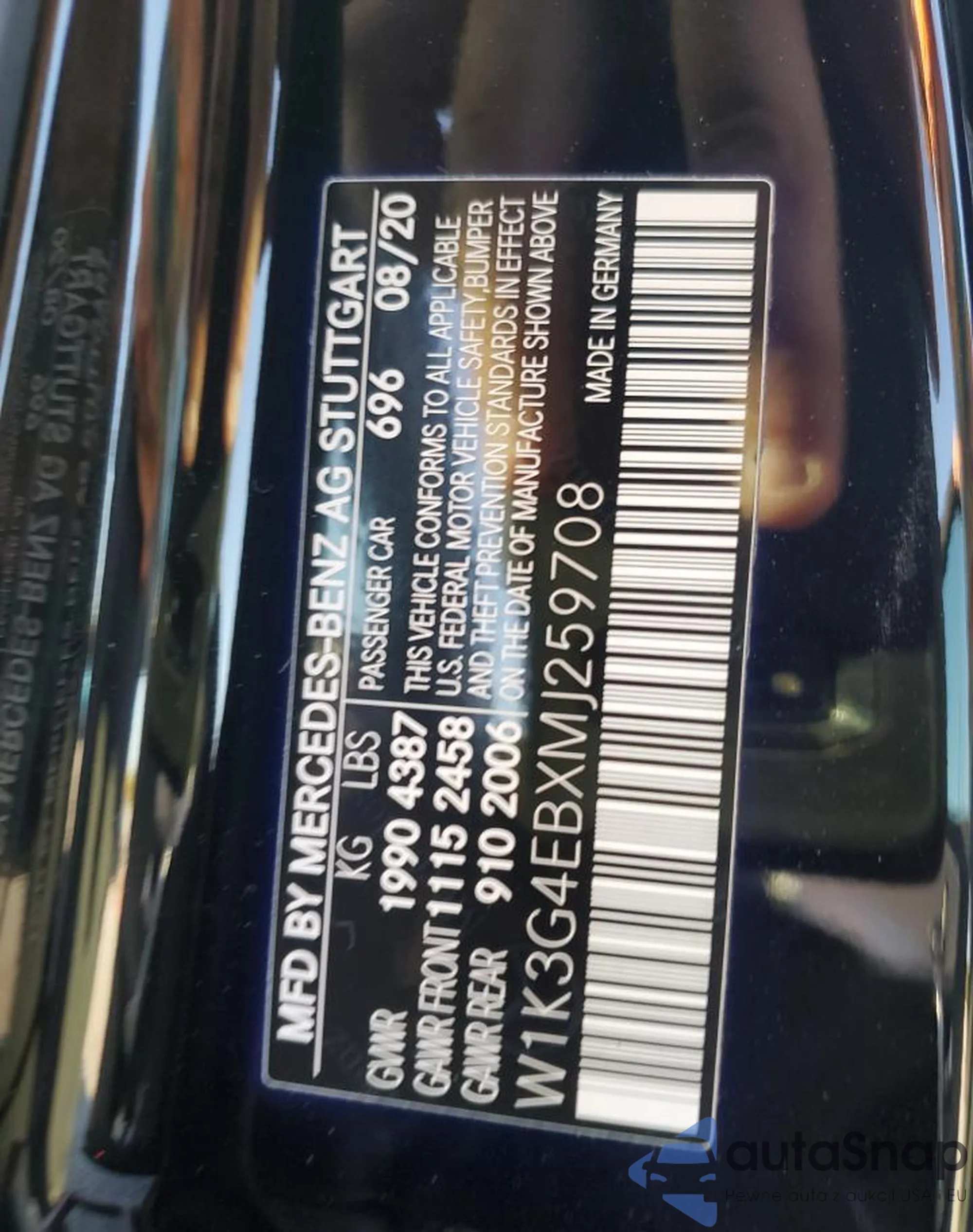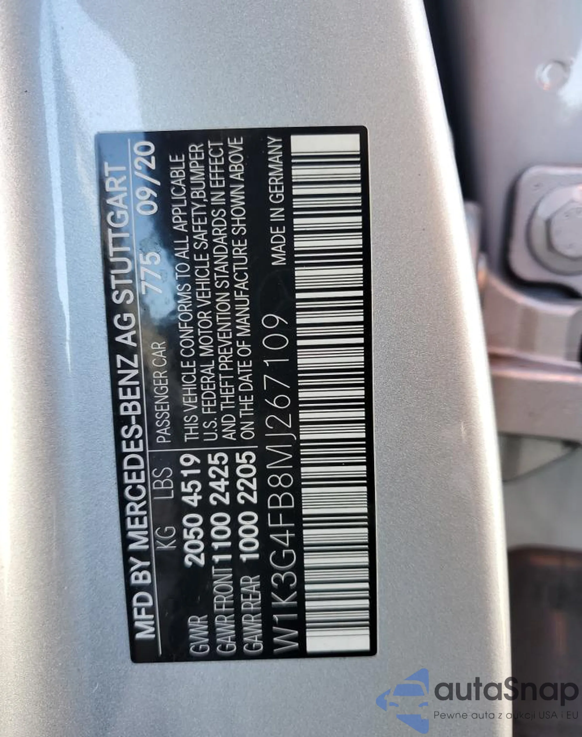 • VIN W1K3G4FB8MJ267109
