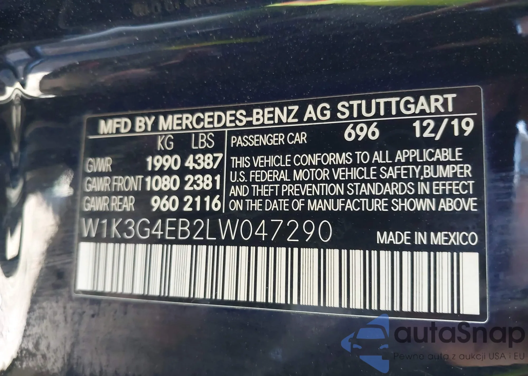 • VIN W1K3G4EB2LW047290