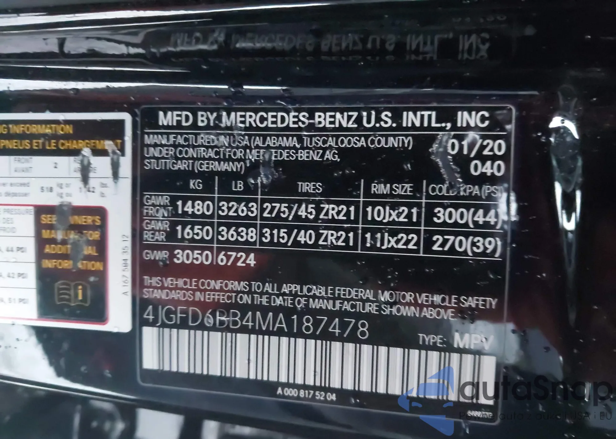 • VIN 4JGFD6BB4MA187478