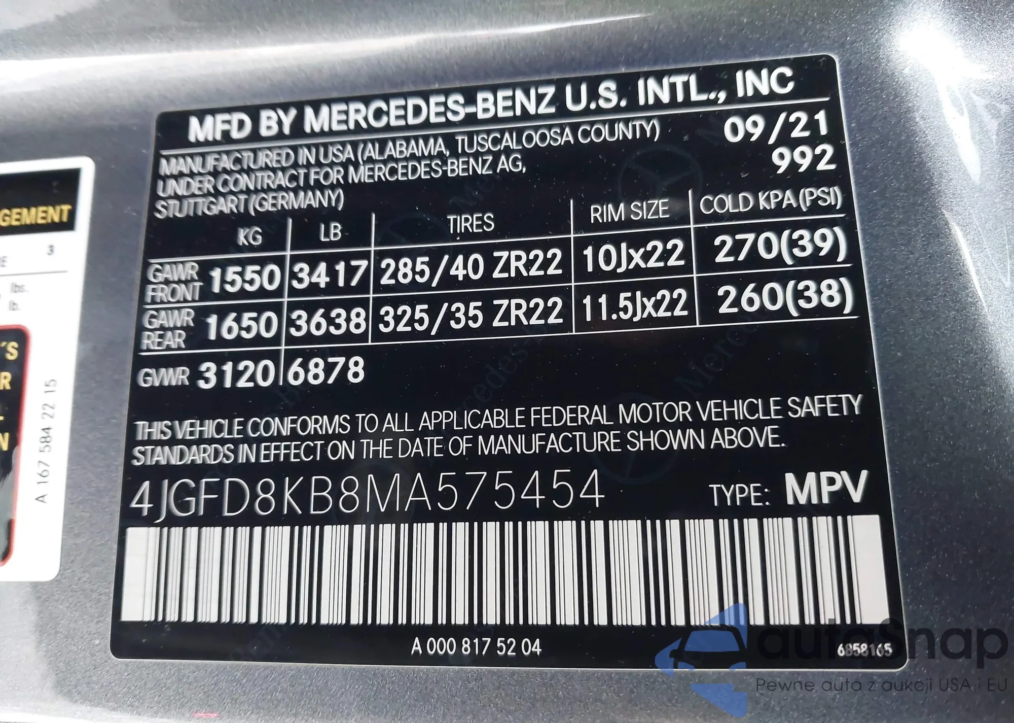 • VIN 4JGFD8KB8MA575454