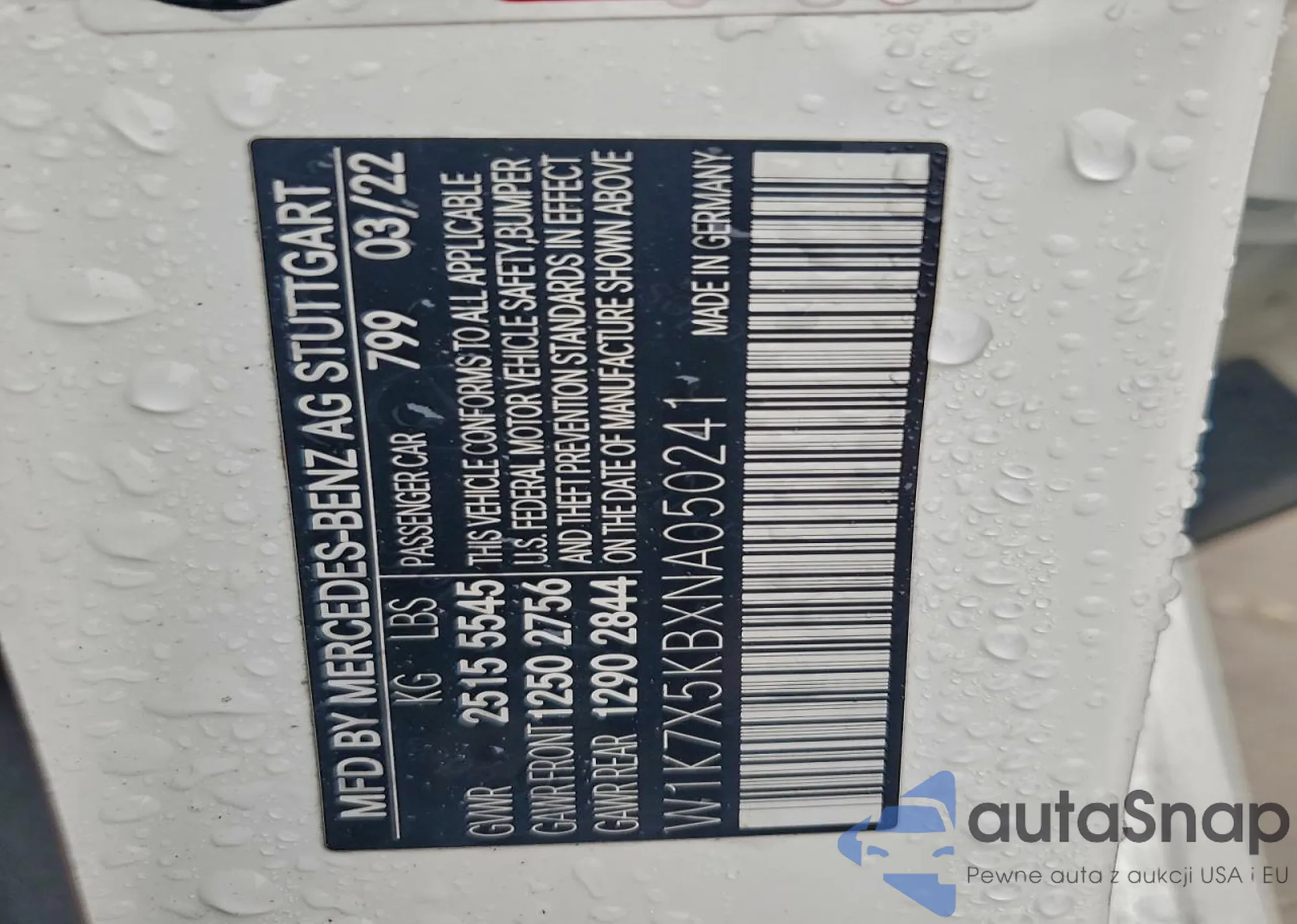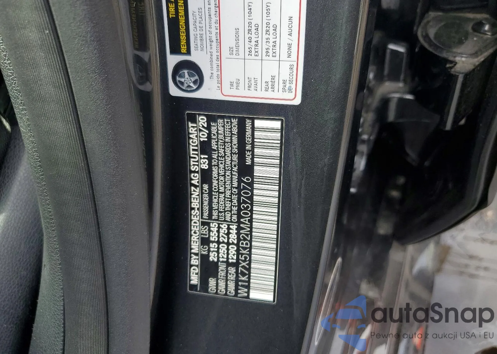 • VIN W1K7X5KB2MA037076