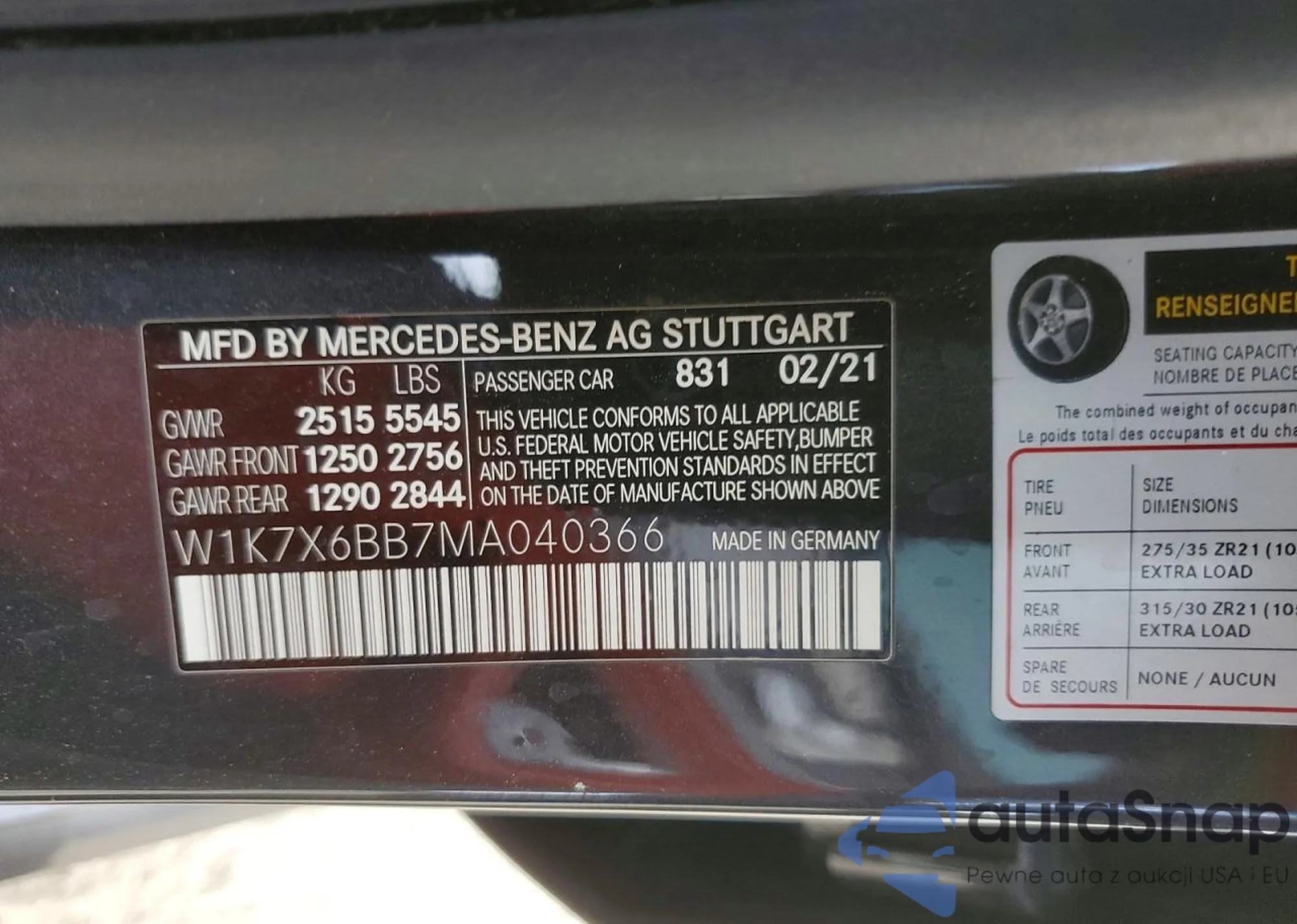 • VIN W1K7X6BB7MA040366