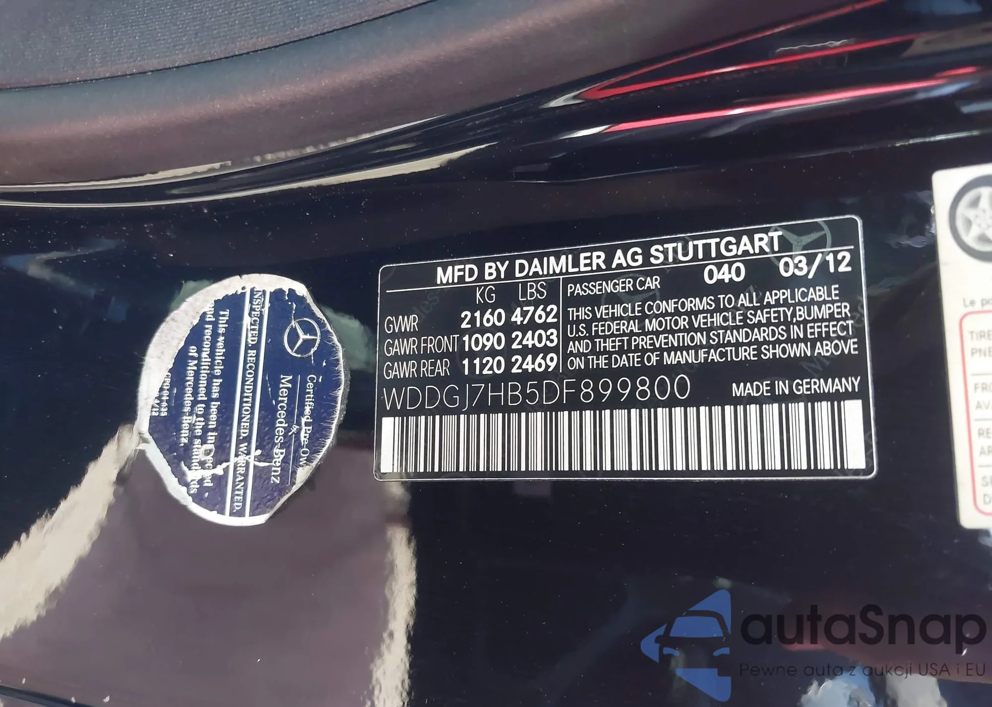 • VIN WDDGJ7HB5DF899800
