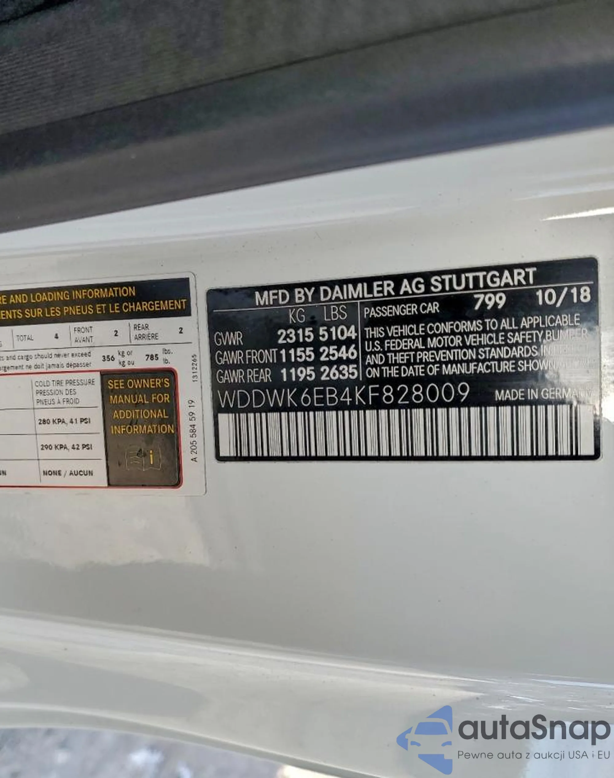 • VIN WDDWK6EB4KF828009