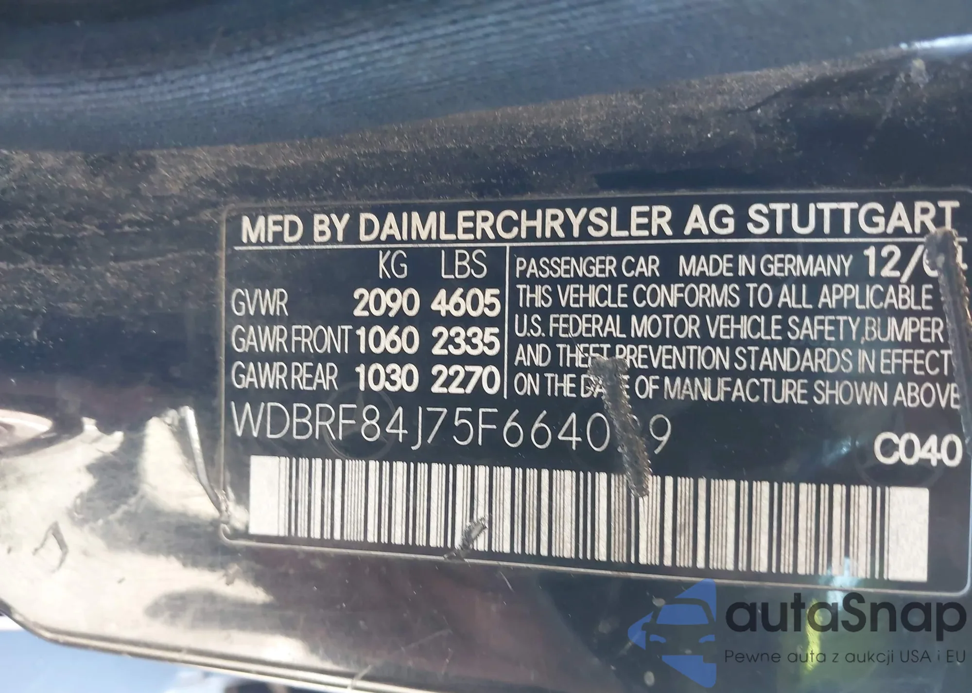 LOT: 44085029 VIN: WDBRF84J75F664029