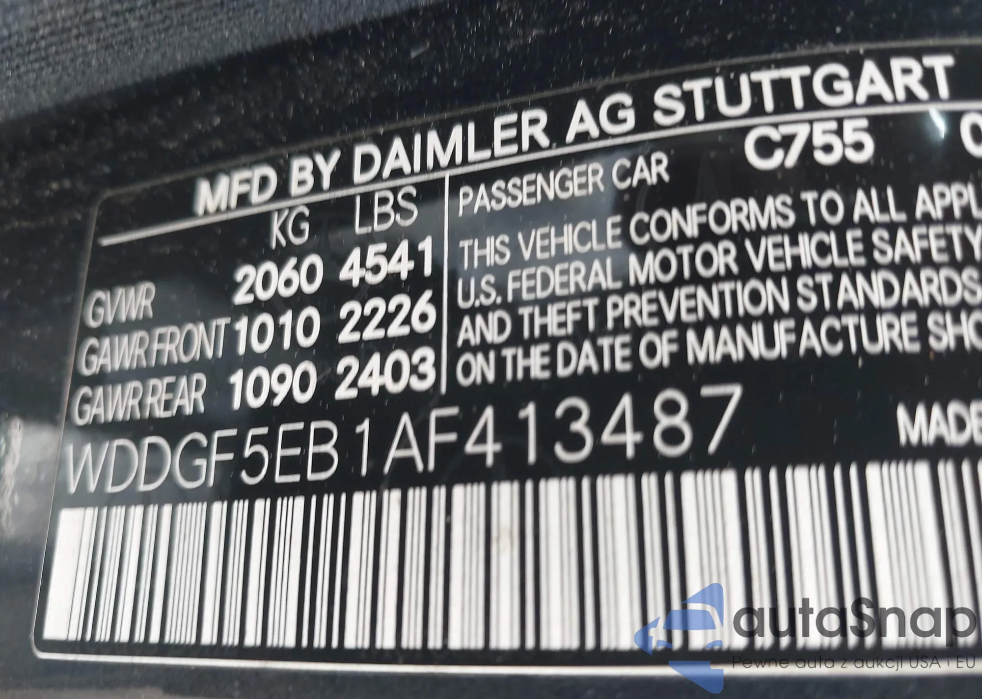 • VIN WDDGF5EB1AF413487