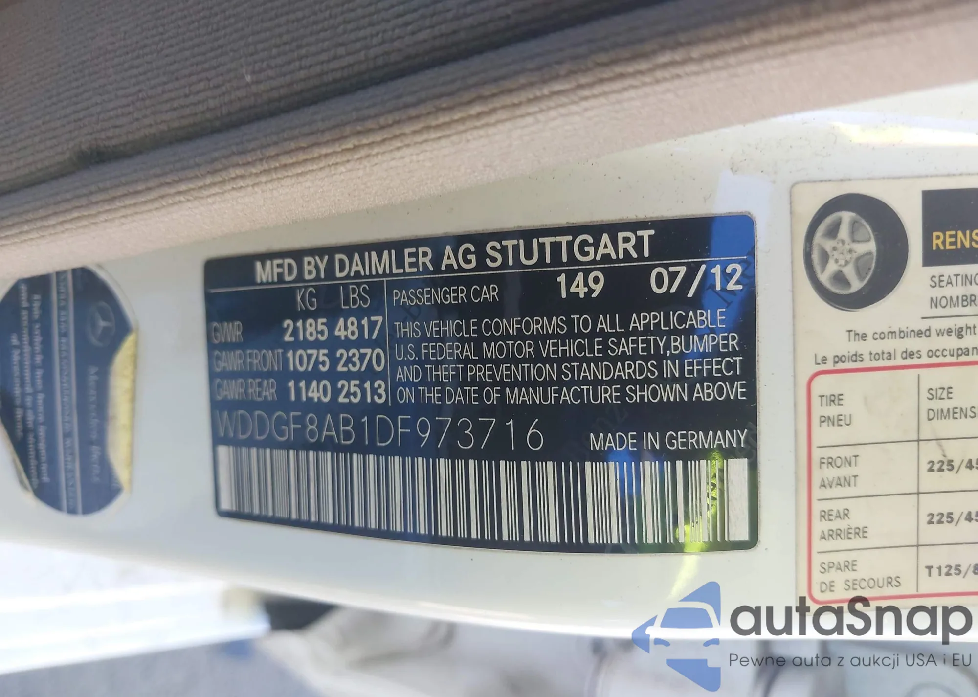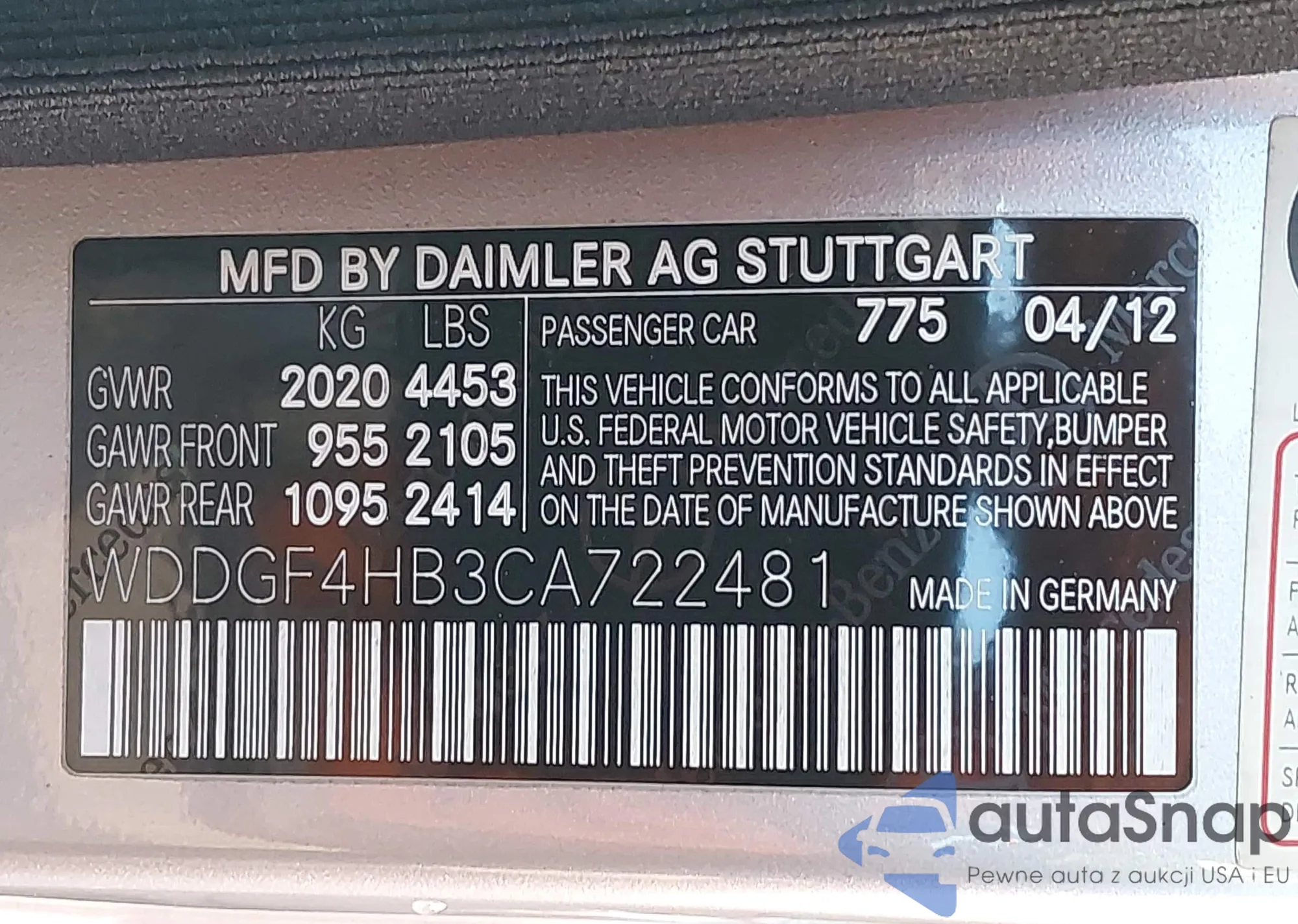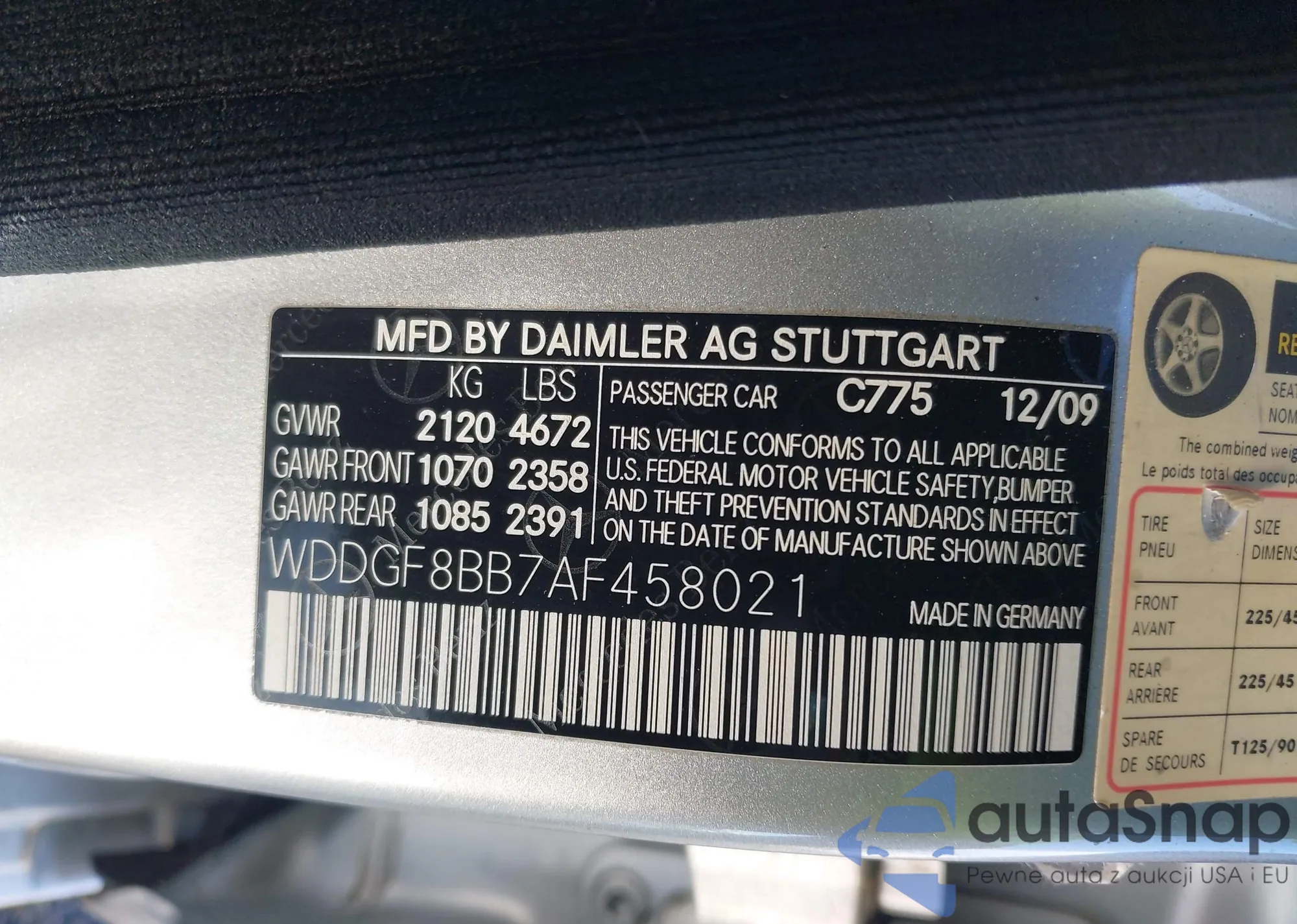 LOT: 44163457 VIN: WDDGF8BB7AF458021