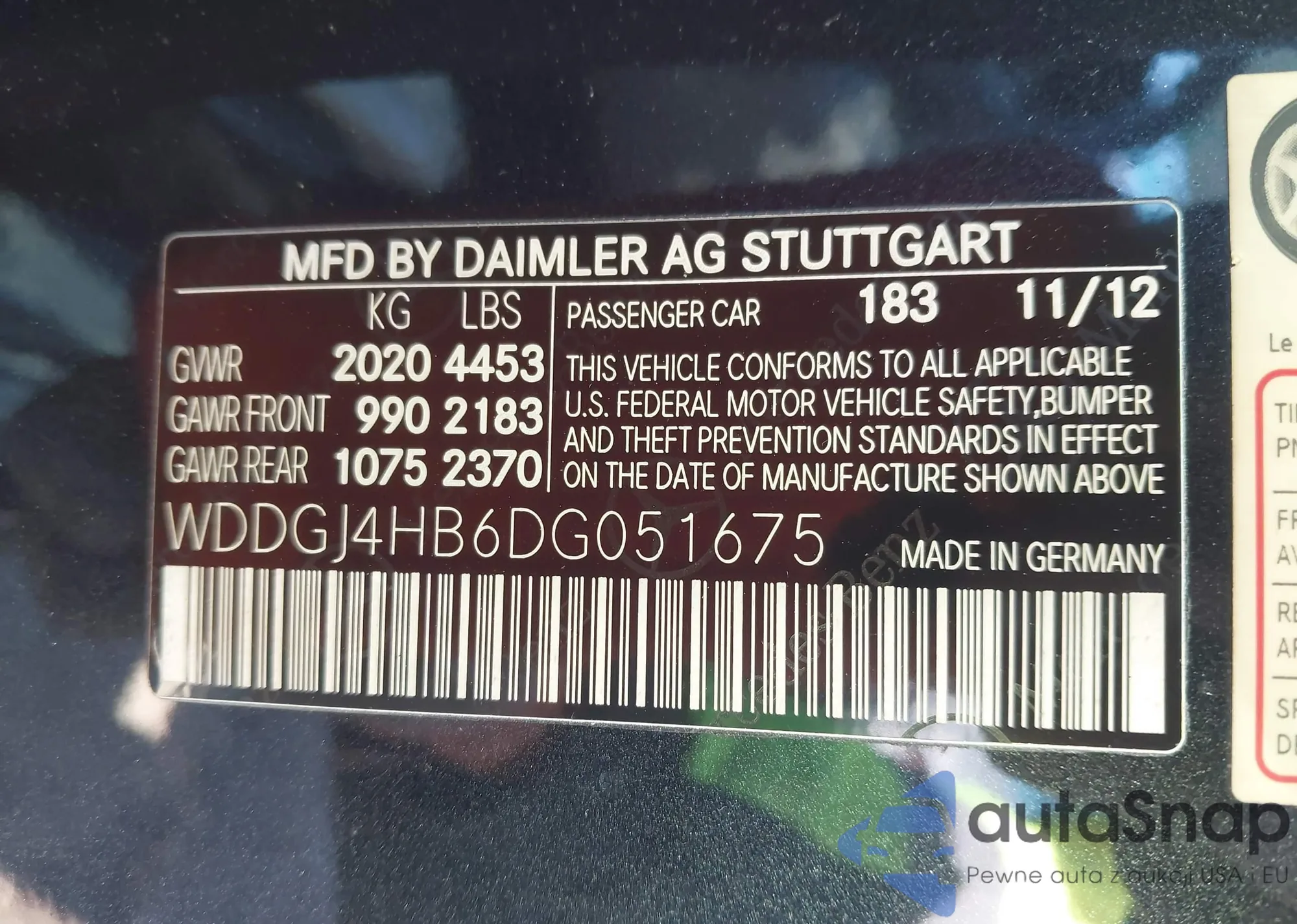 • VIN WDDGJ4HB6DG051675