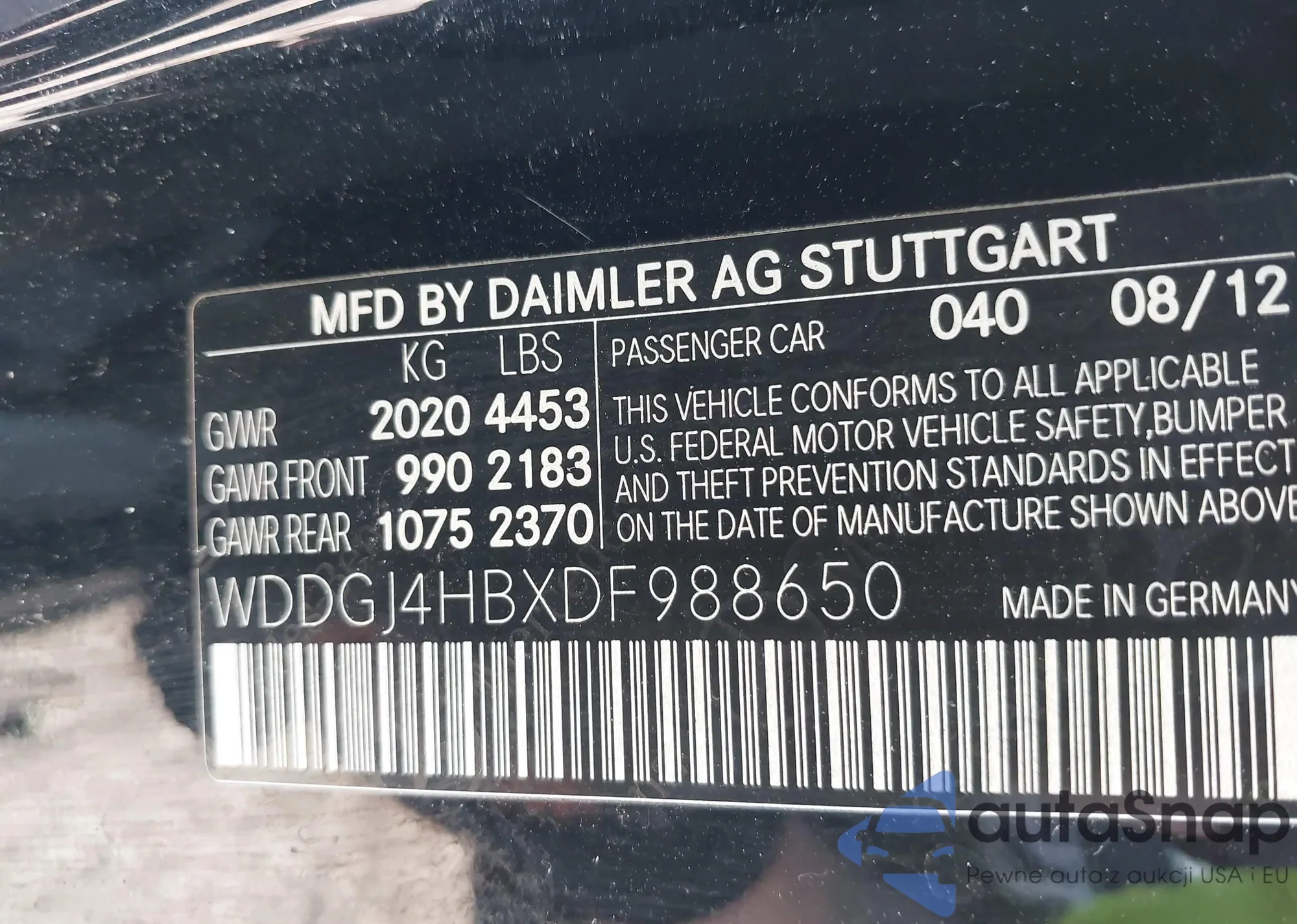 • VIN WDDGJ4HBXDF988650