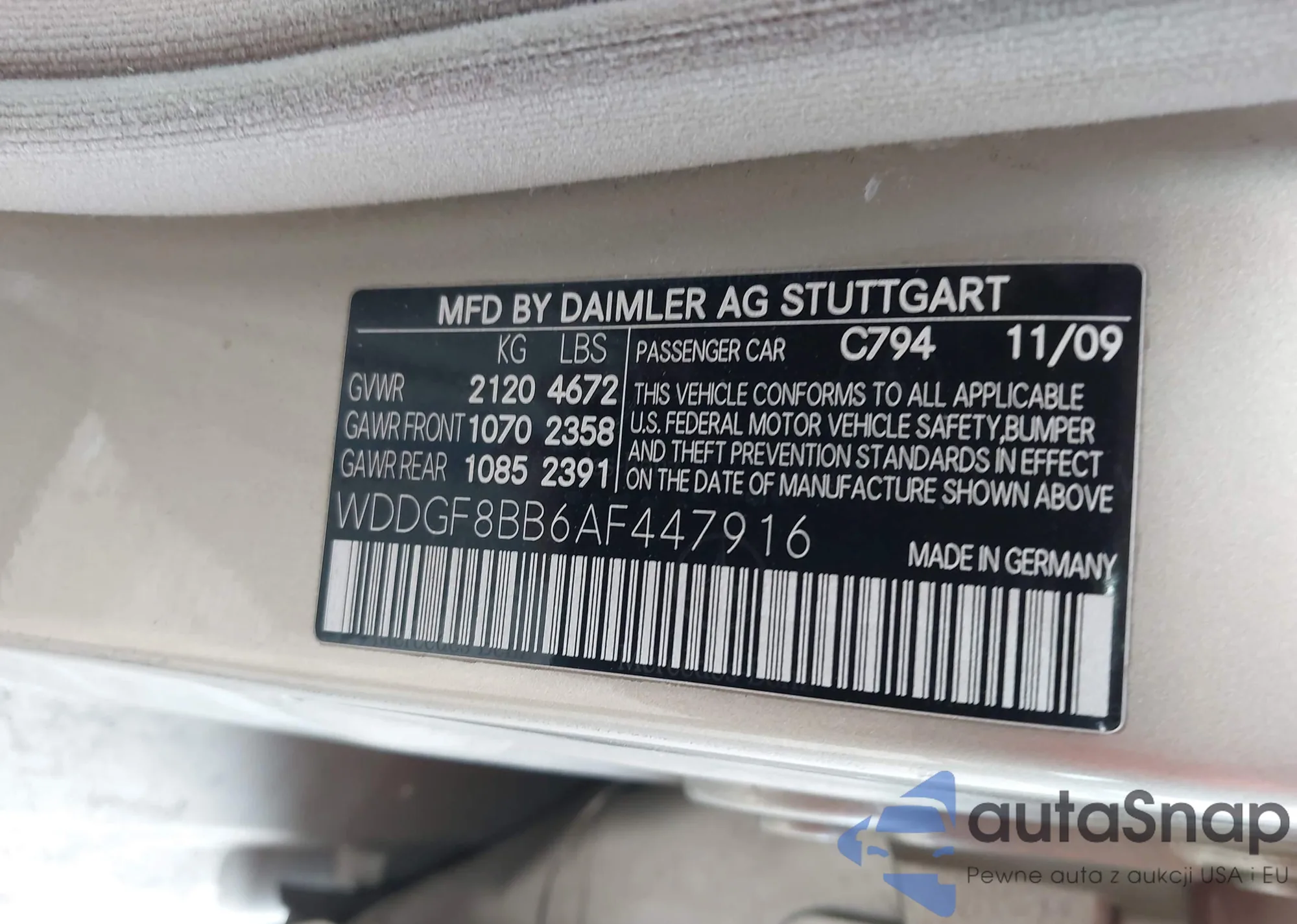 LOT: 44377809 VIN: WDDGF8BB6AF447916