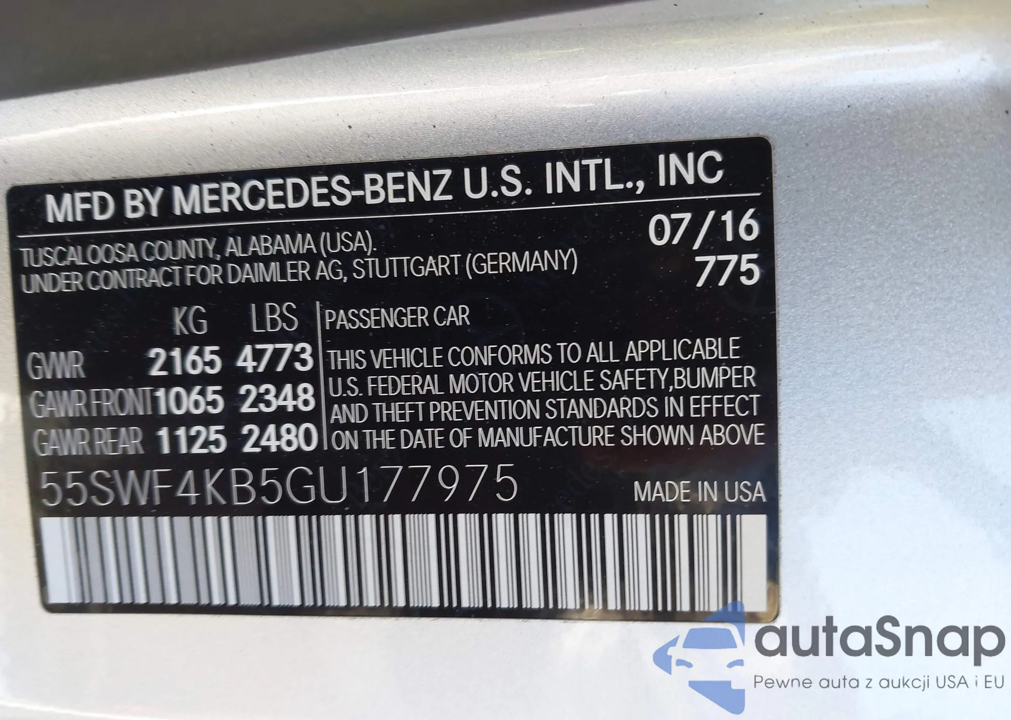 • VIN 55SWF4KB5GU177975