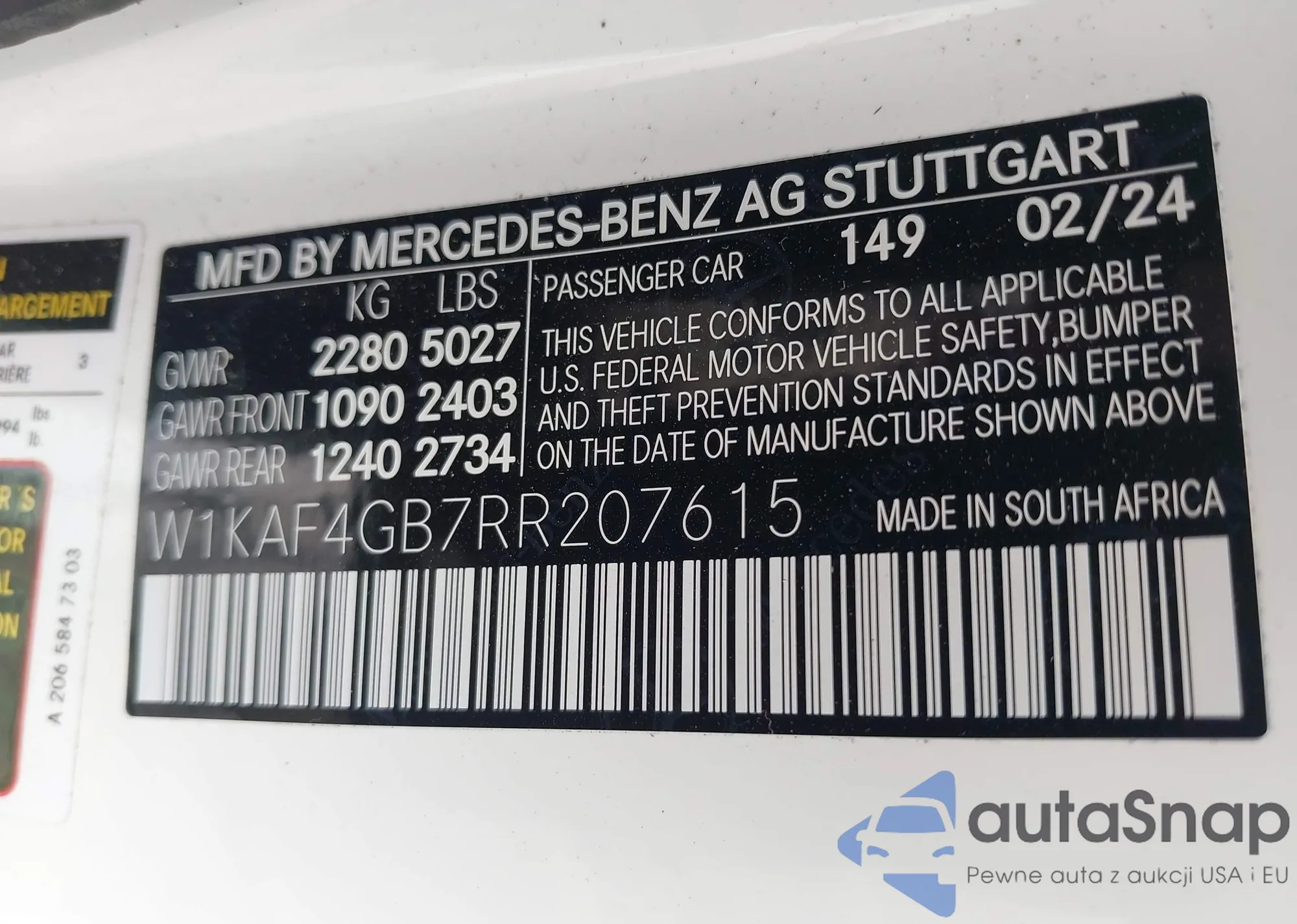 • VIN W1KAF4GB7RR207615