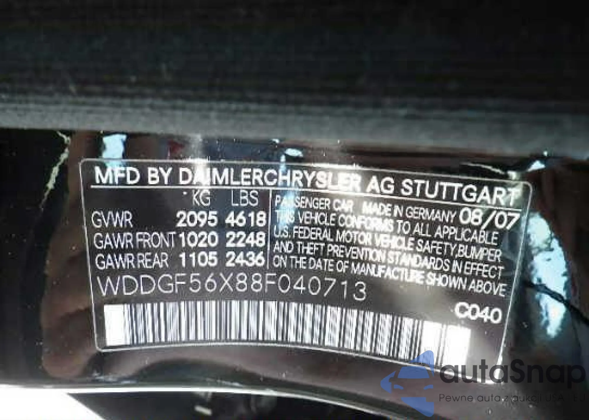 • VIN WDDGF56X88F040713