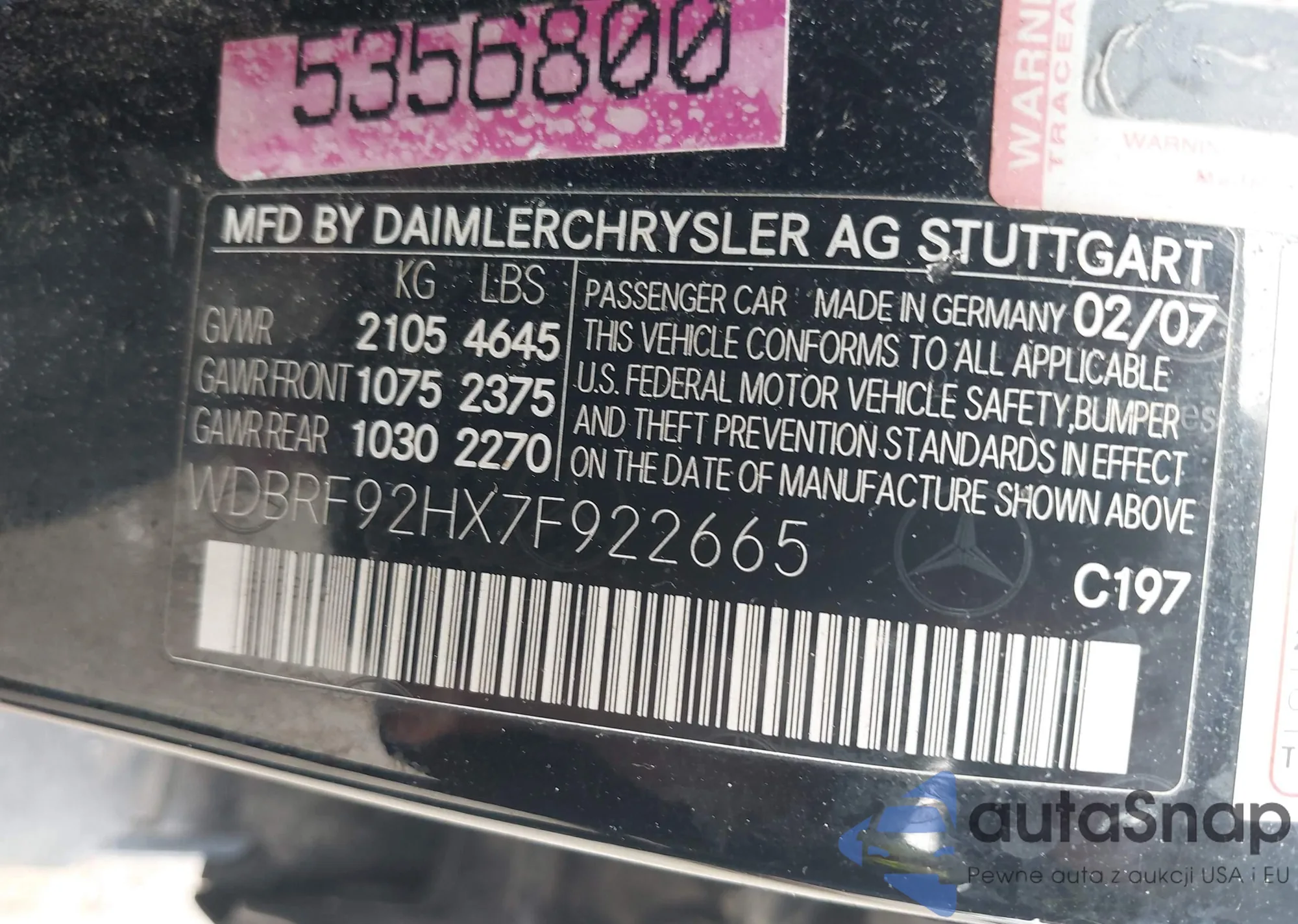 • VIN WDBRF92HX7F922665
