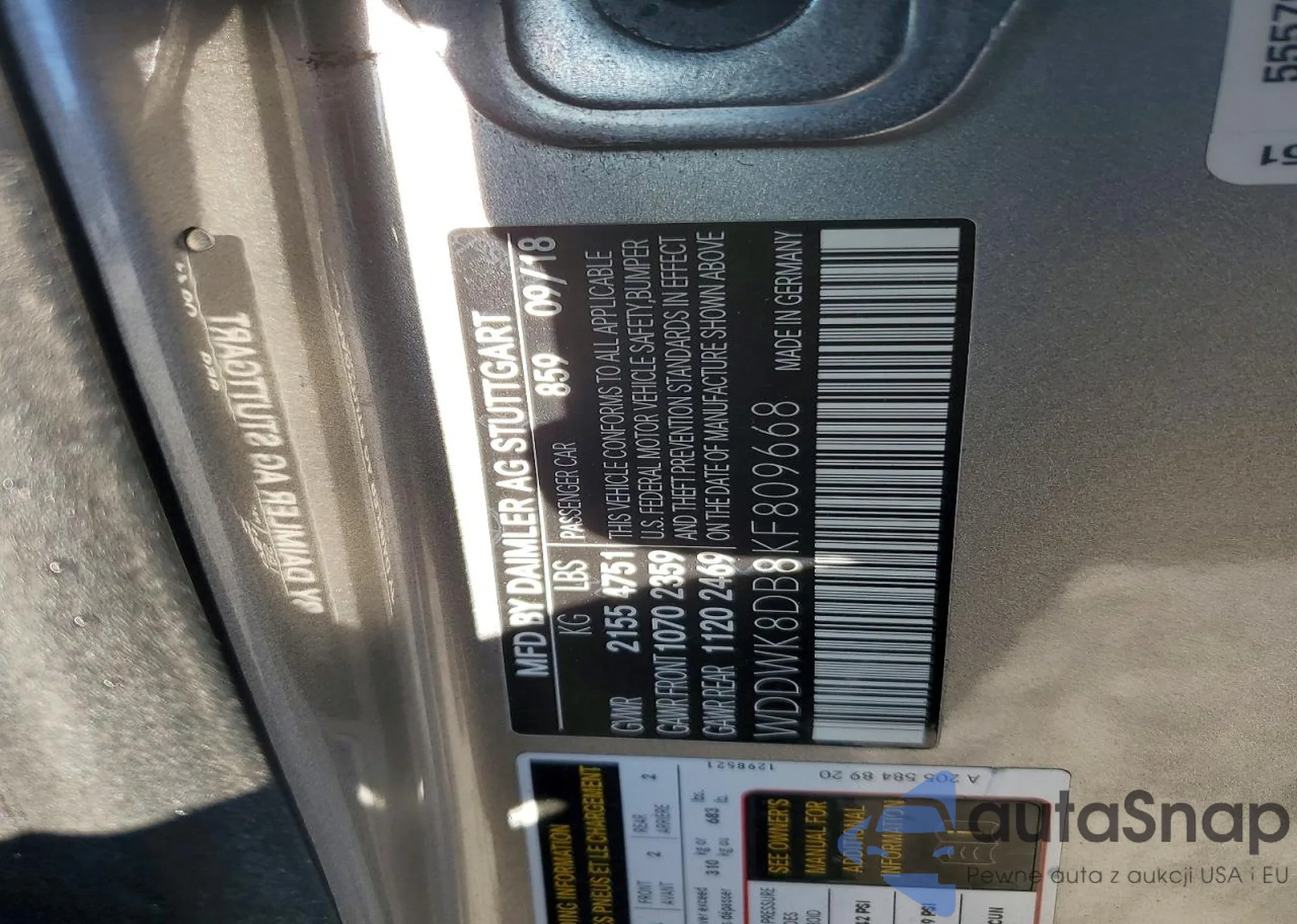 LOT: 76210465 VIN: WDDWK8DB8KF809668