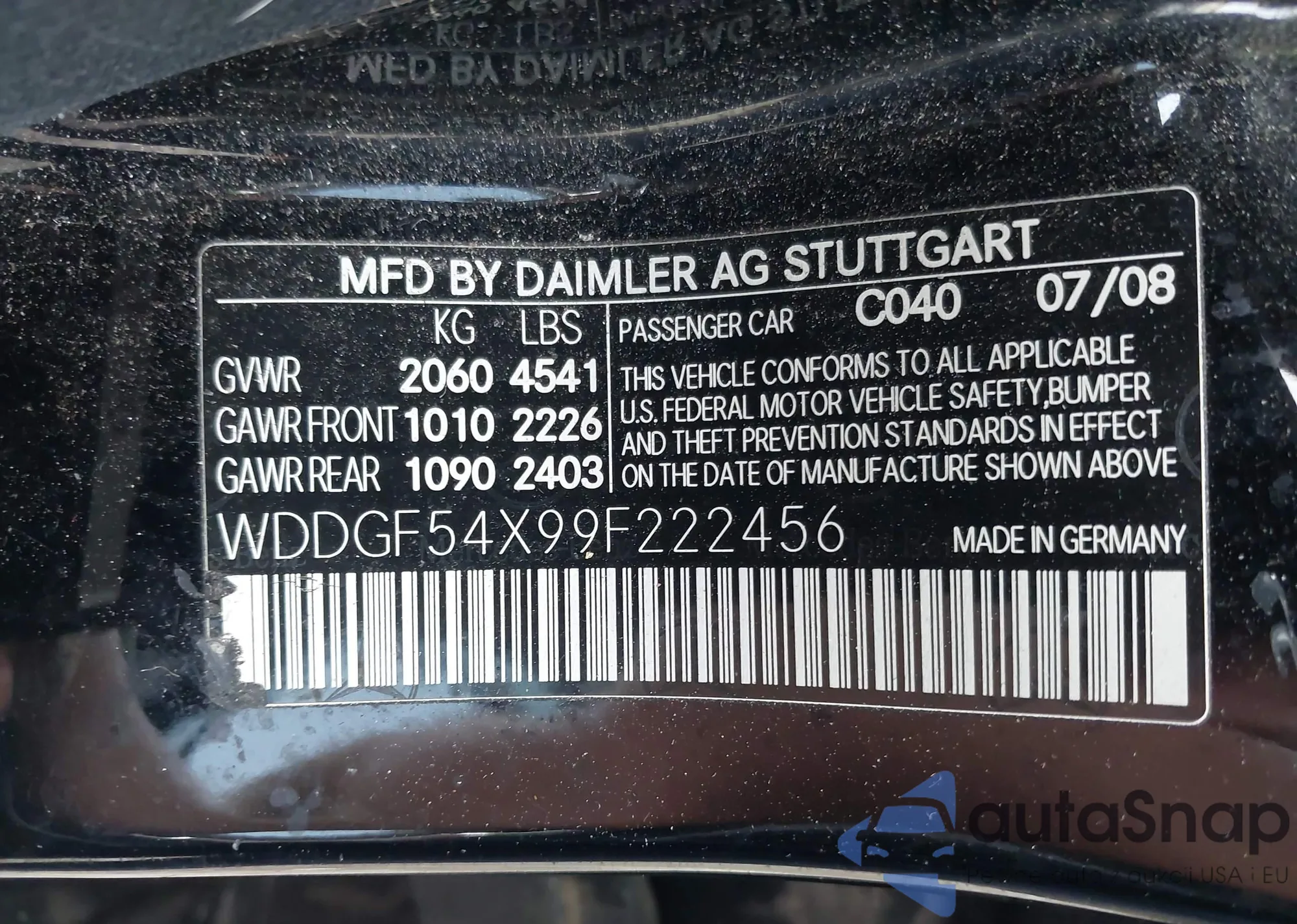 LOT: 44339400 VIN: WDDGF54X99F222456
