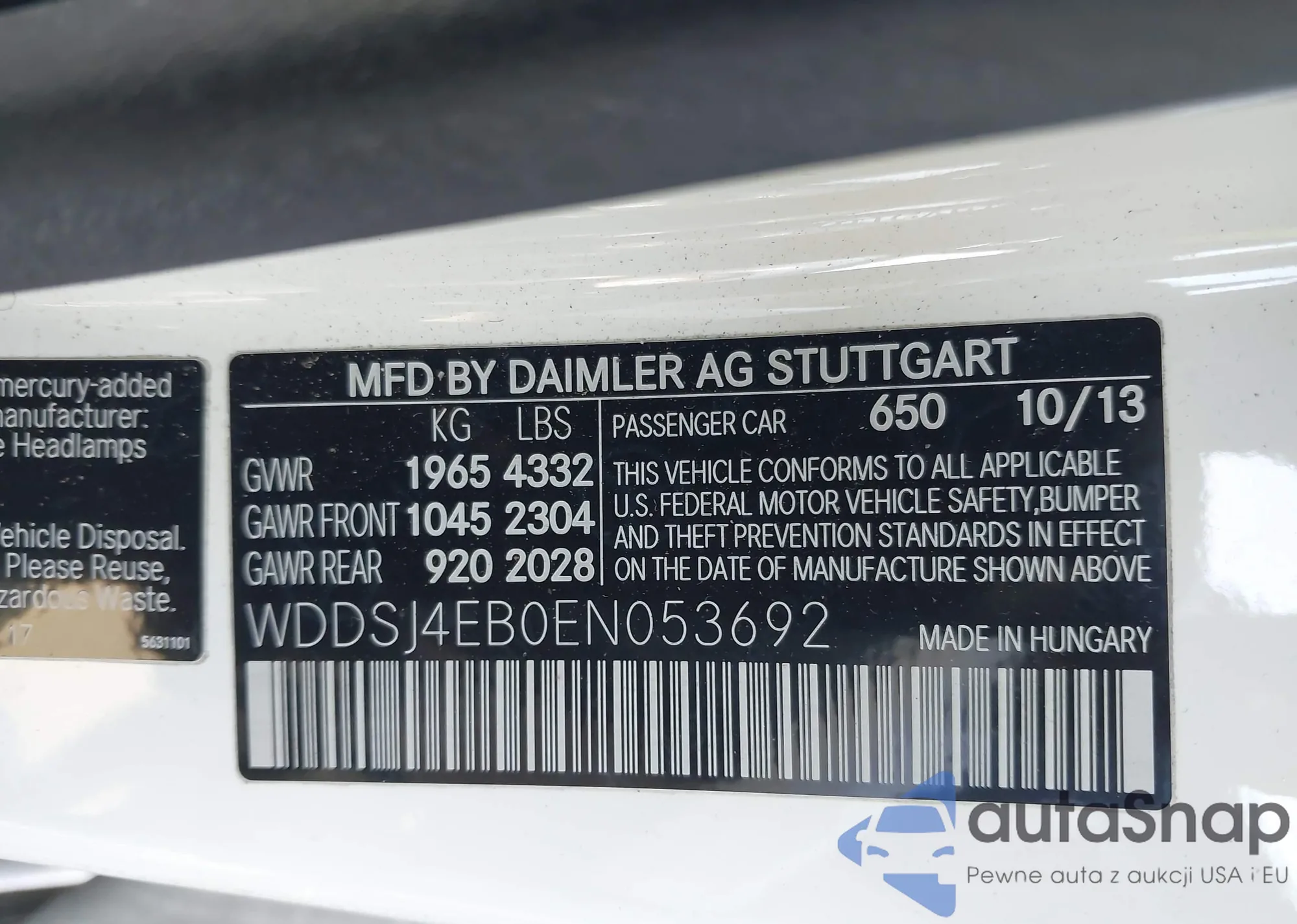 • VIN WDDSJ4EB0EN053692