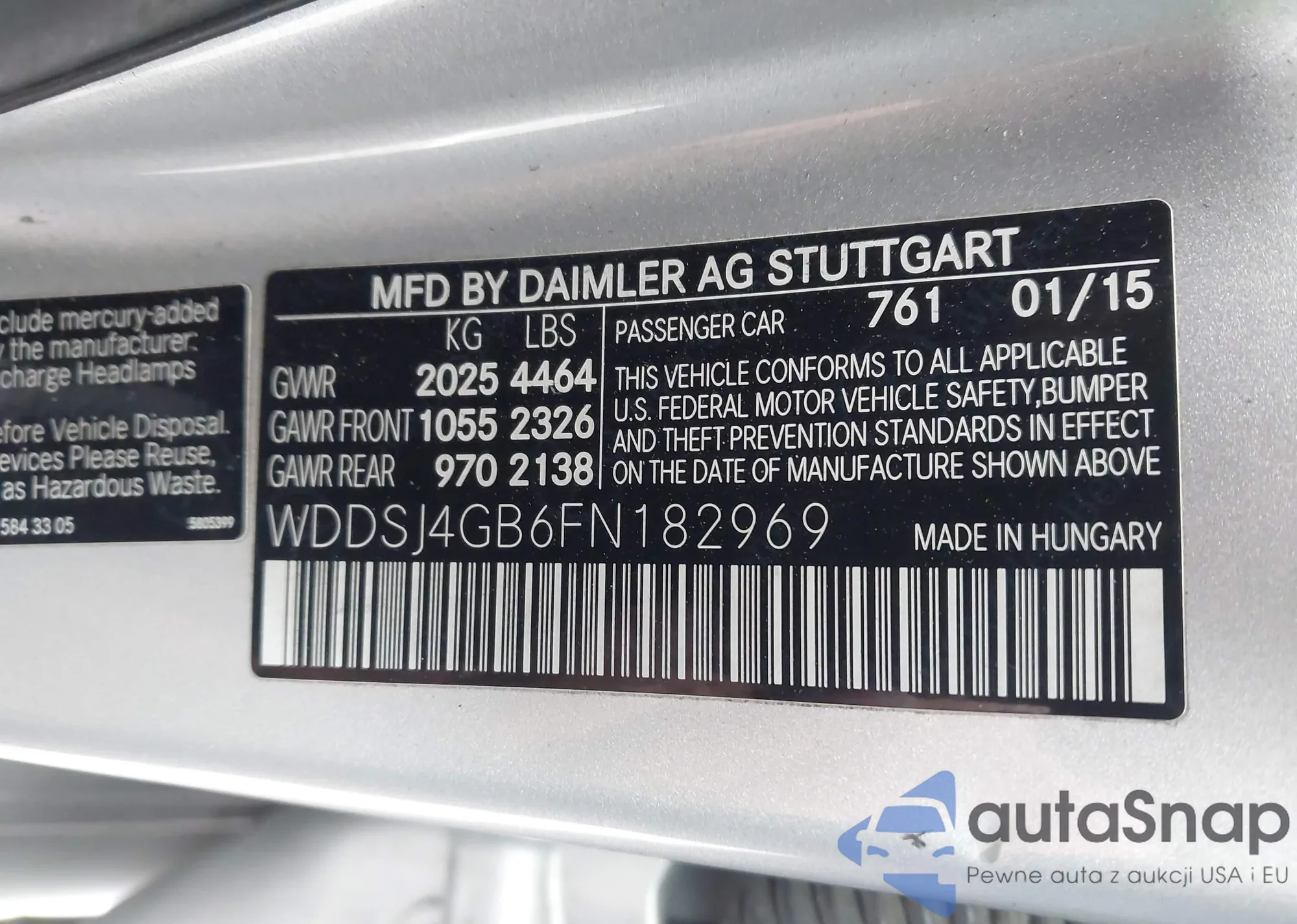 • VIN WDDSJ4GB6FN182969