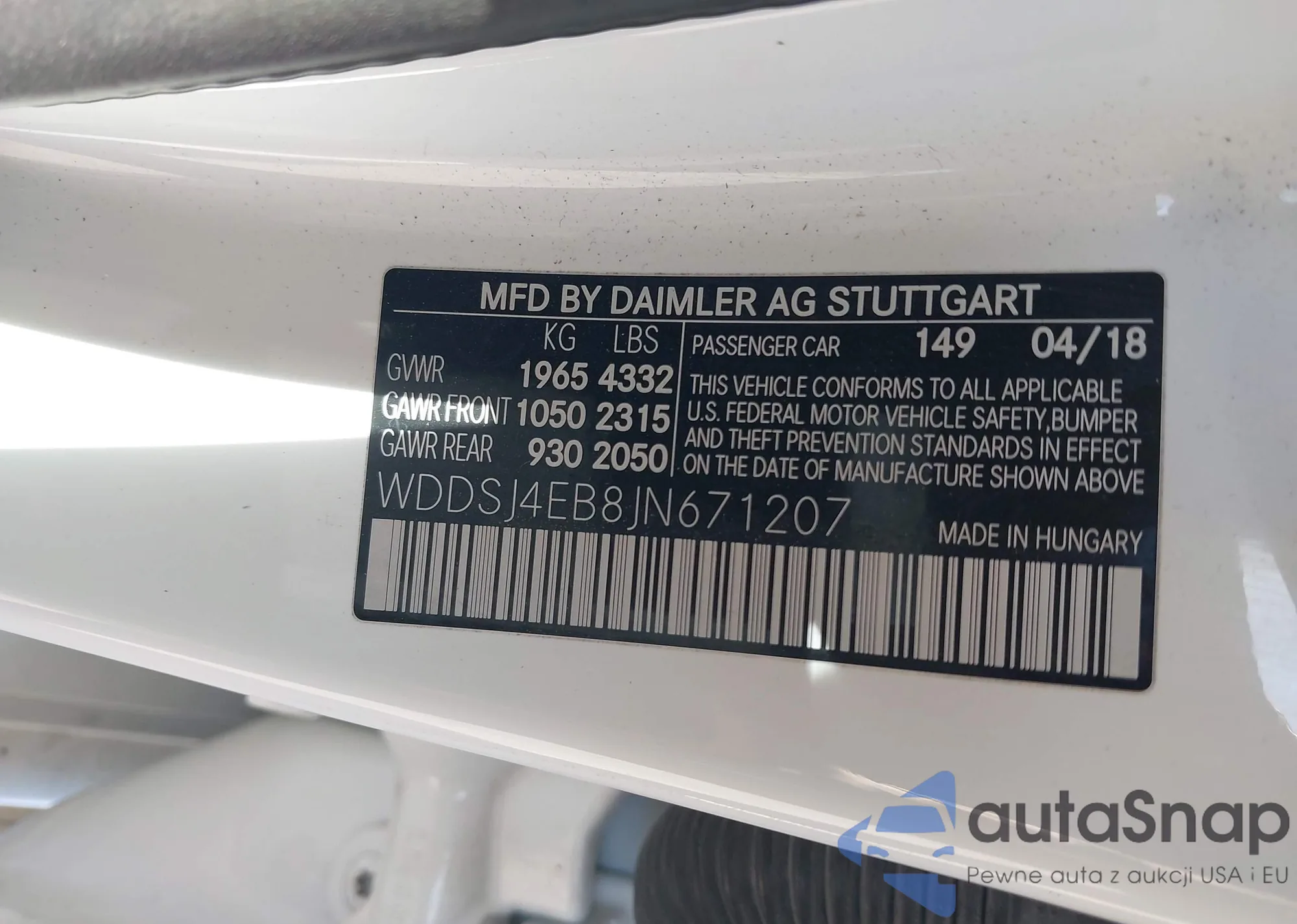 • VIN WDDSJ4EB8JN671207