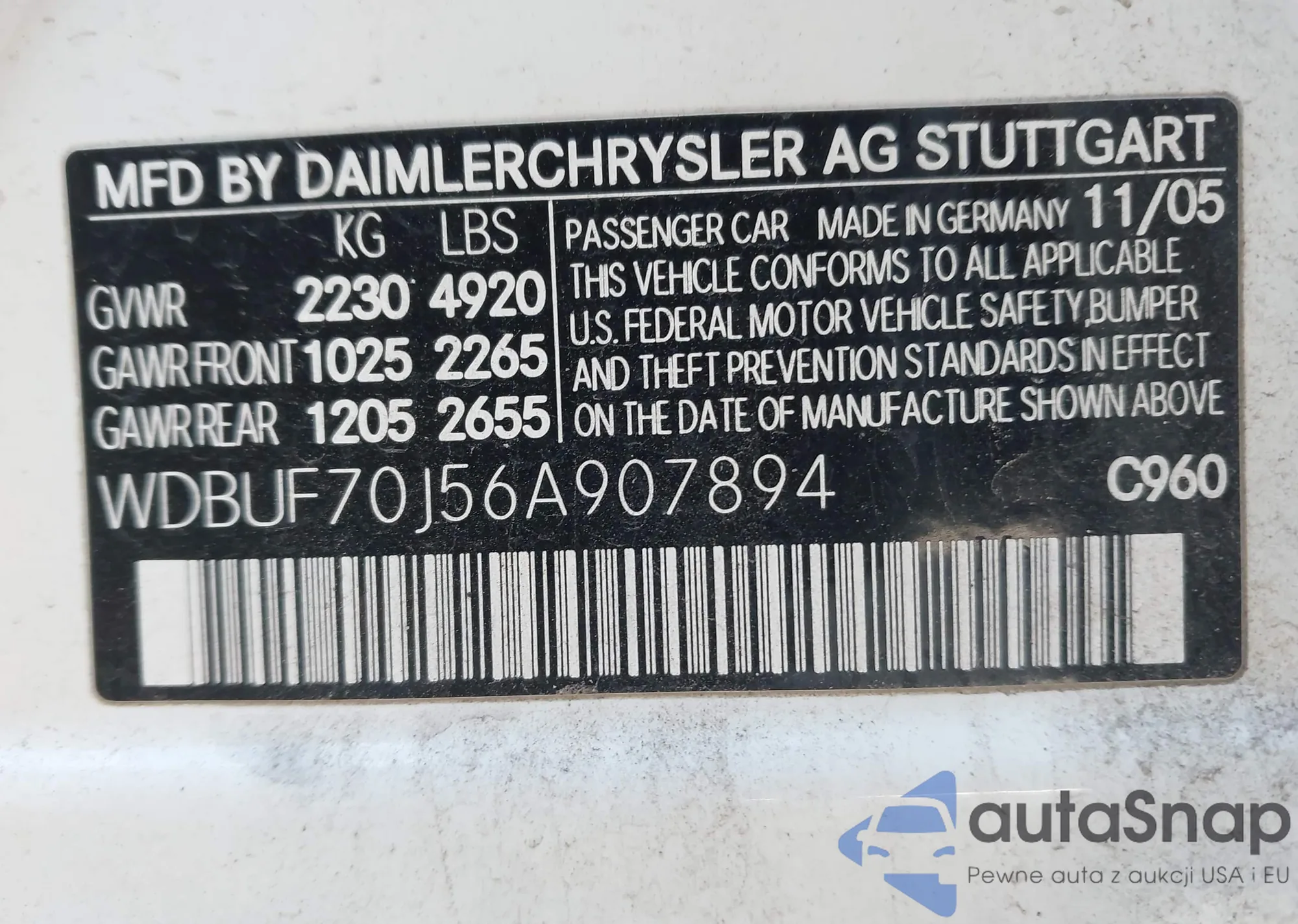 LOT: 43495243 VIN: WDBUF70J56A907894