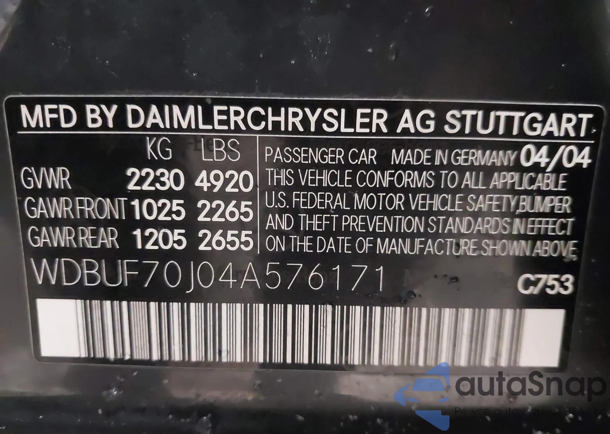• VIN WDBUF70J04A576171