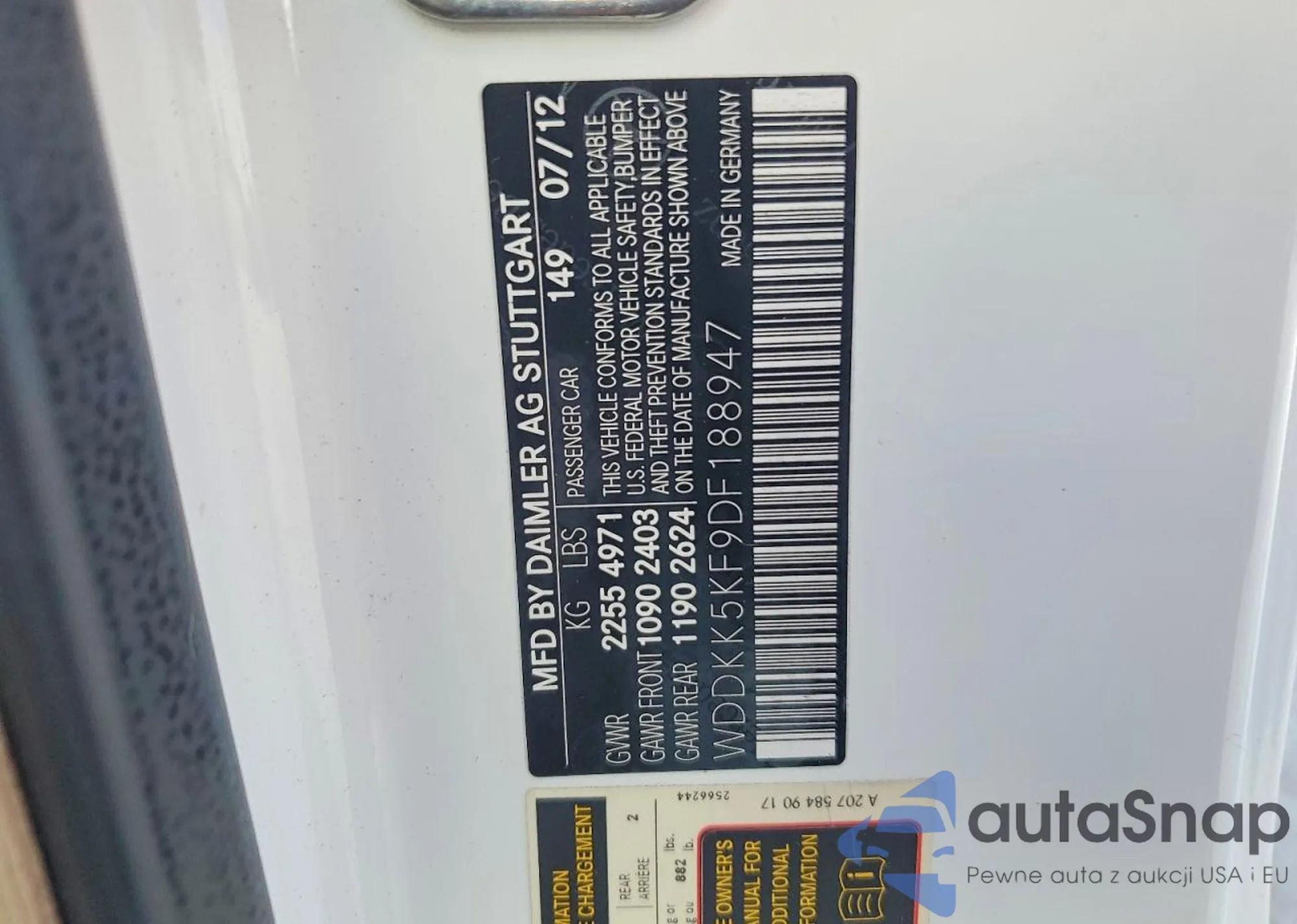 LOT: 74150305 VIN: WDDKK5KF9DF188947