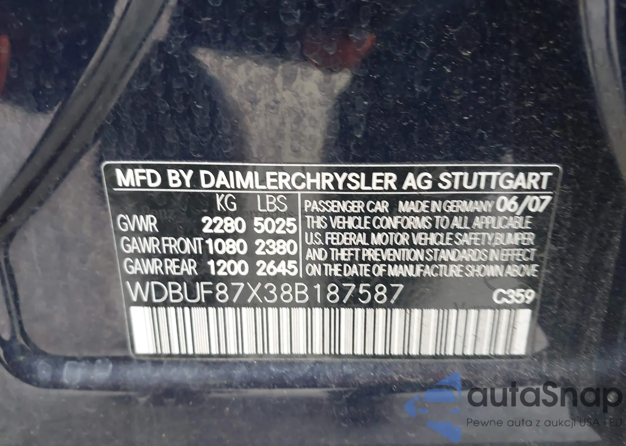 LOT: 44261453 VIN: WDBUF87X38B187587