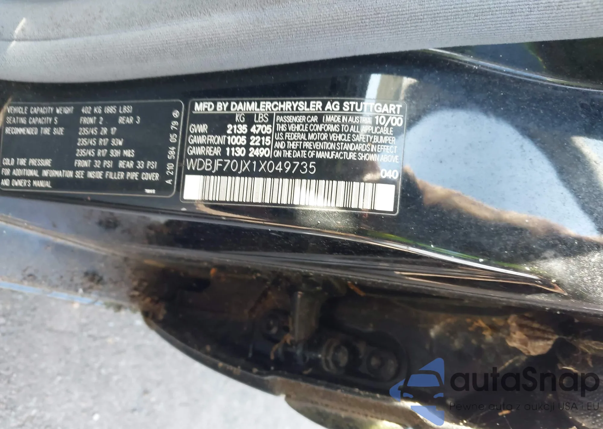 LOT: 44298075 VIN: WDBJF70JX1X049735