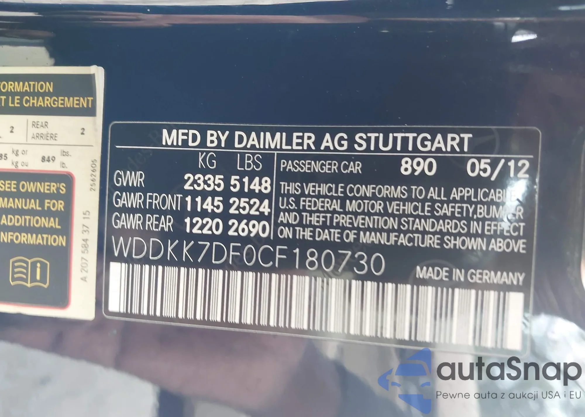 • VIN WDDHF5GBXAA030470