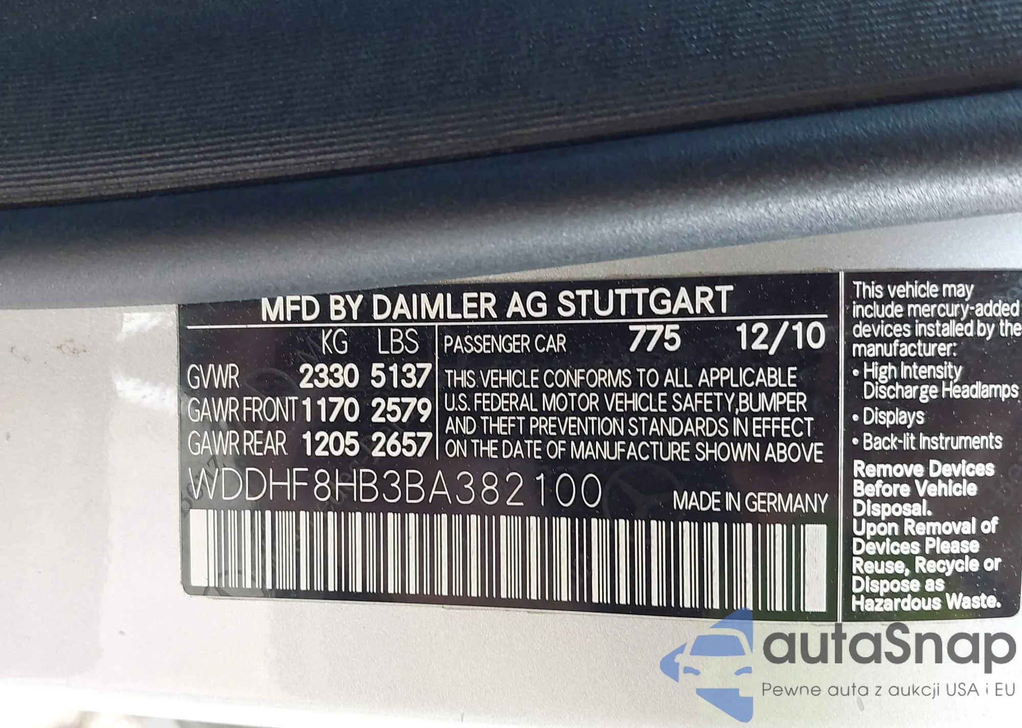 LOT: 43753674 VIN: WDDHF8HB3BA382100