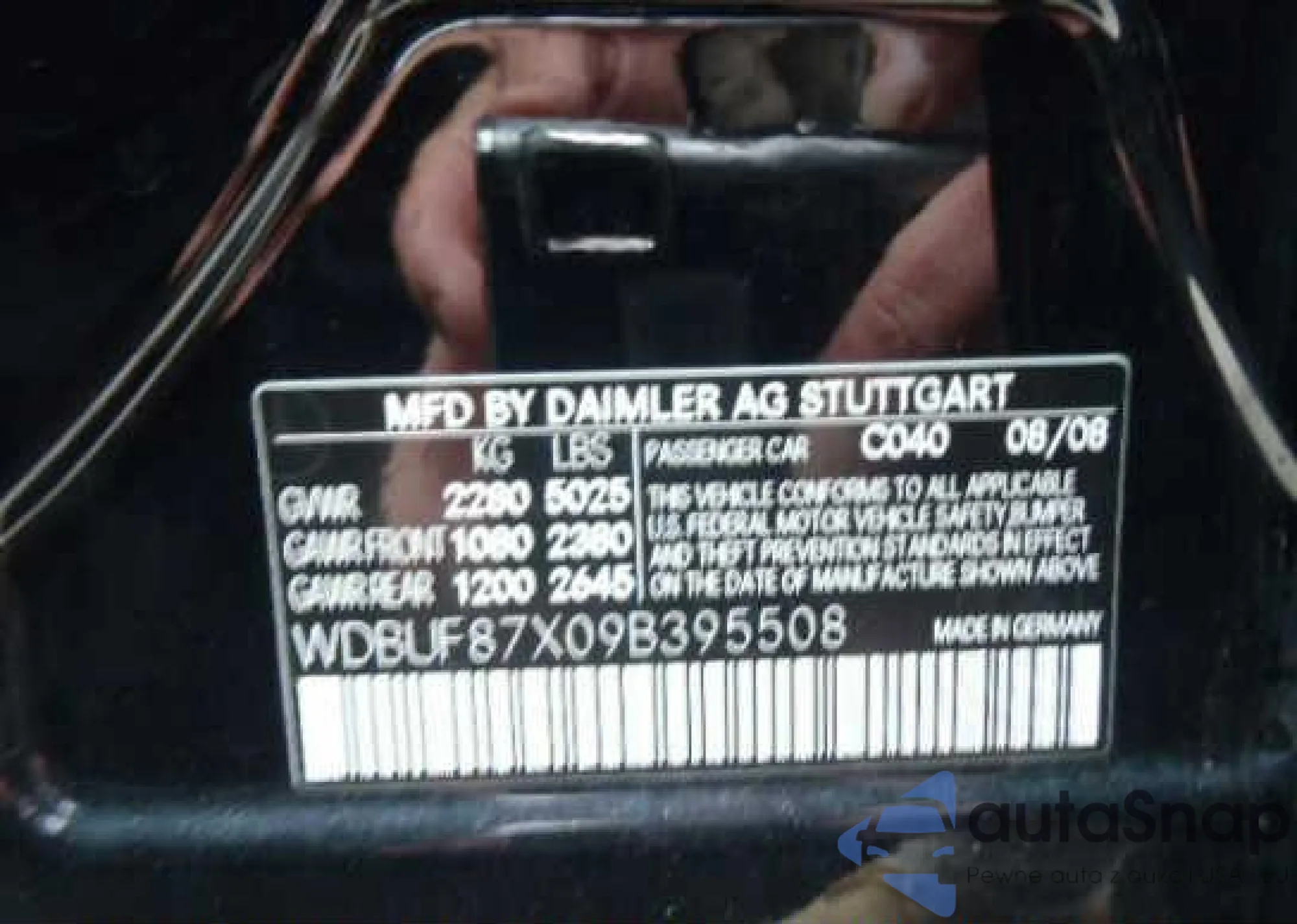 LOT: 9367427 VIN: WDBUF87X09B395508
