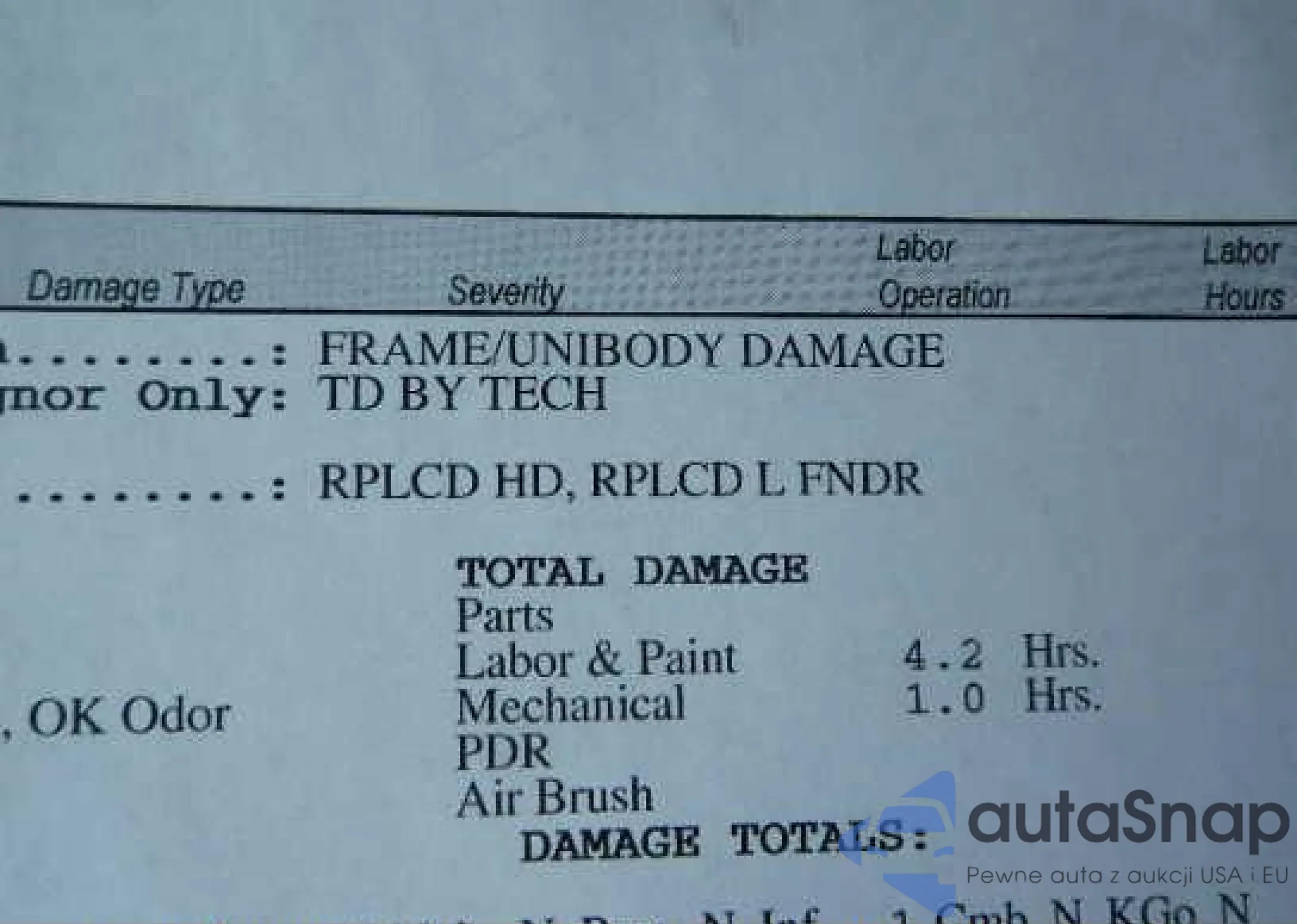 • Uszkodzenia: Przód i tył