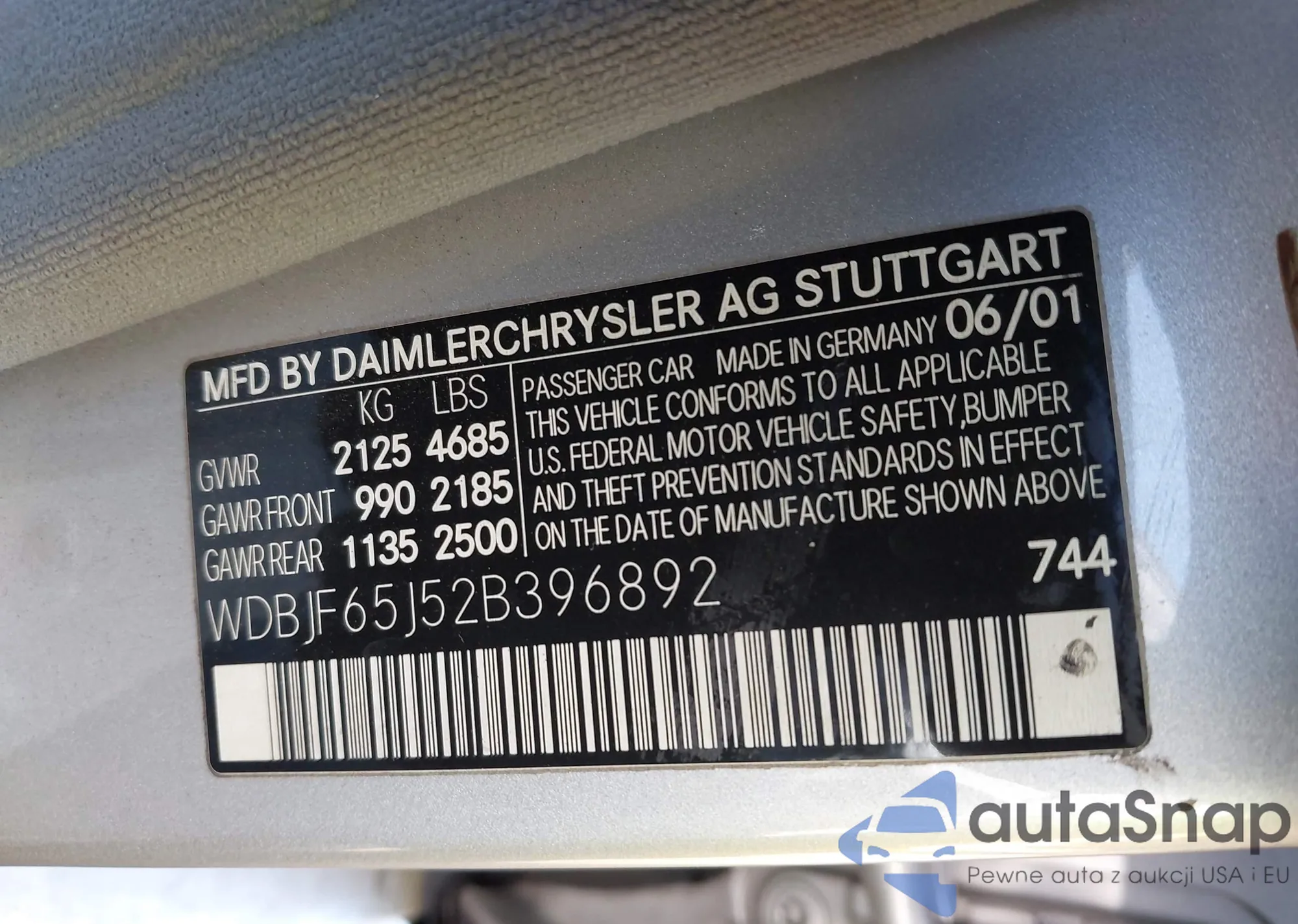 • VIN WDBJF65J52B396892