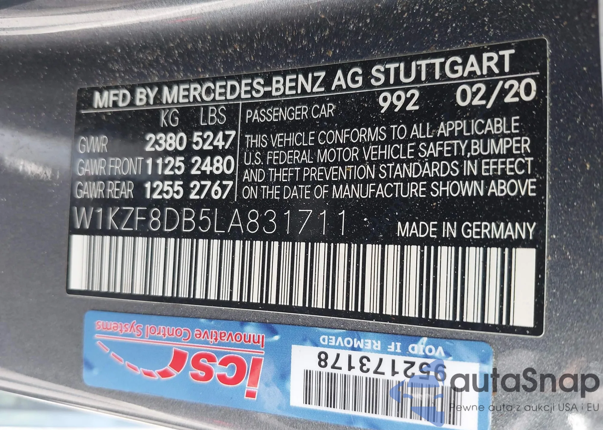 • VIN W1KZF8DB5LA831711