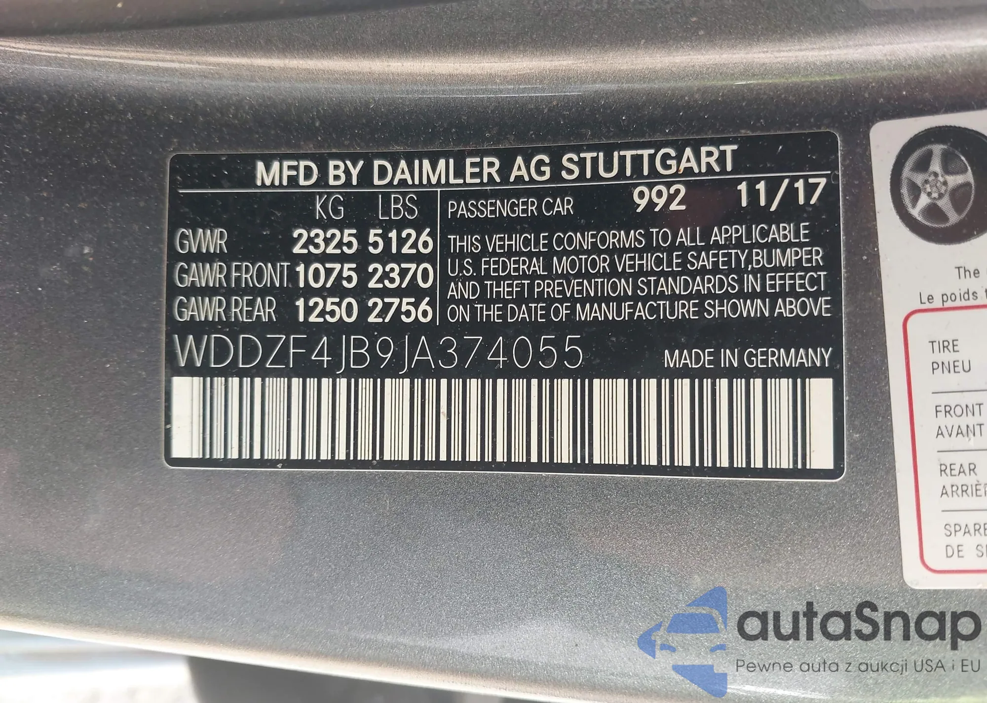 • VIN WDDZF4JB9JA374055