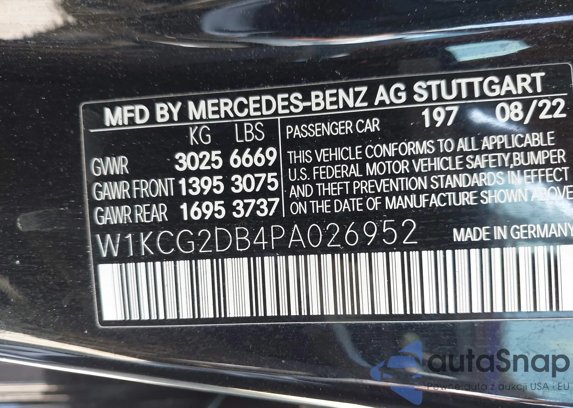 • VIN W1KCG2DB4PA026952