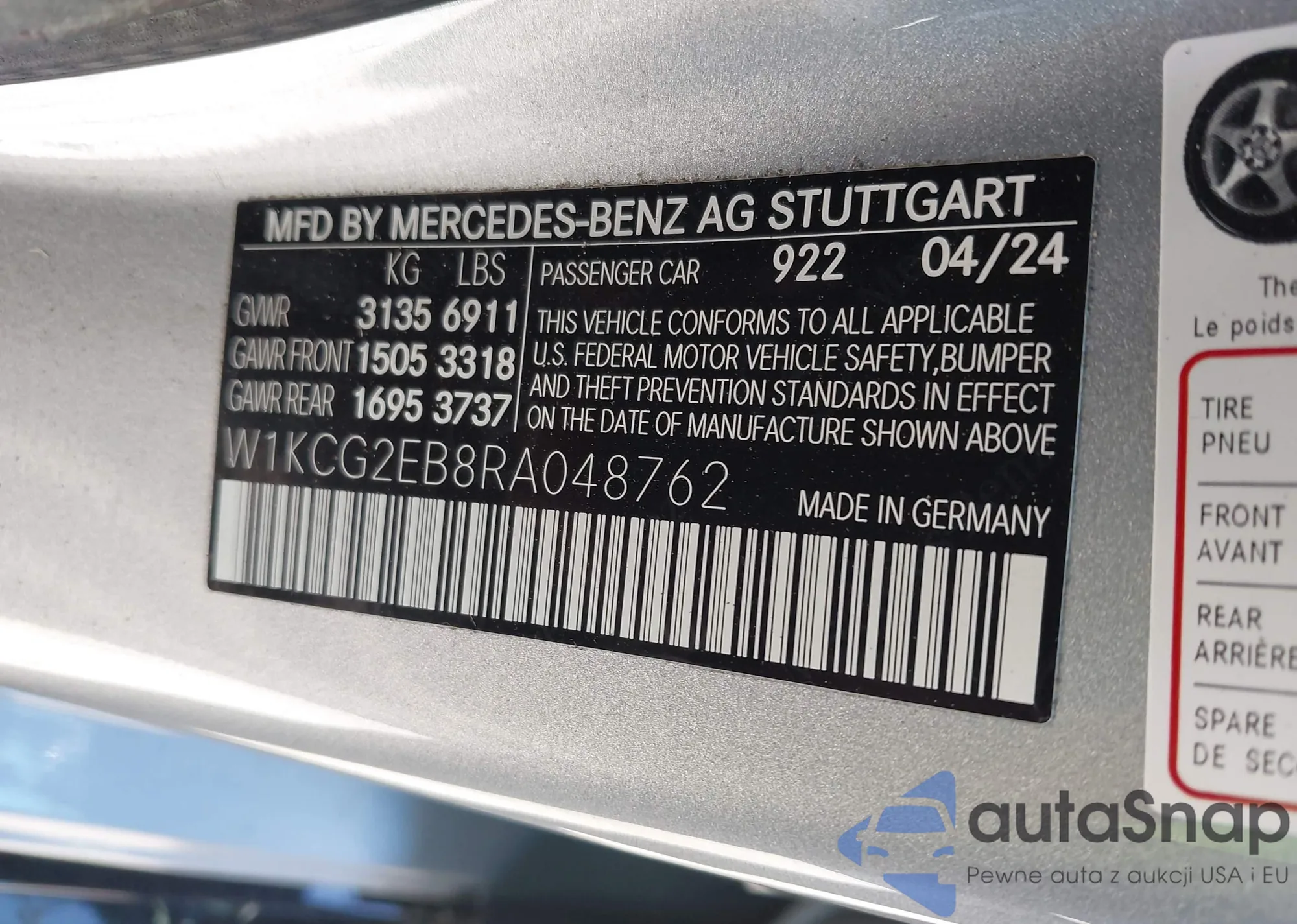 • VIN W1KCG2EB8RA048762