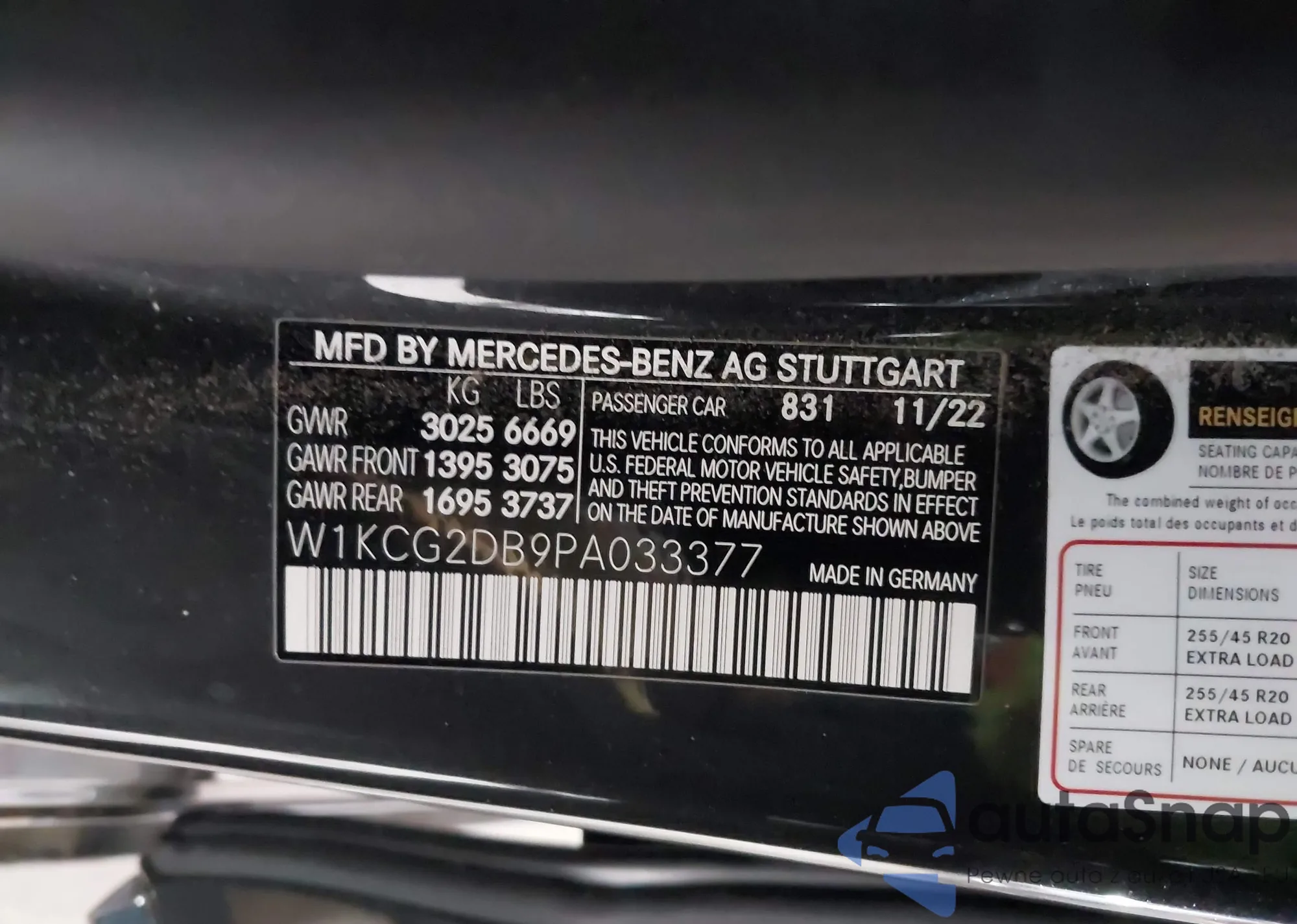 • VIN W1KCG2DB9PA033377