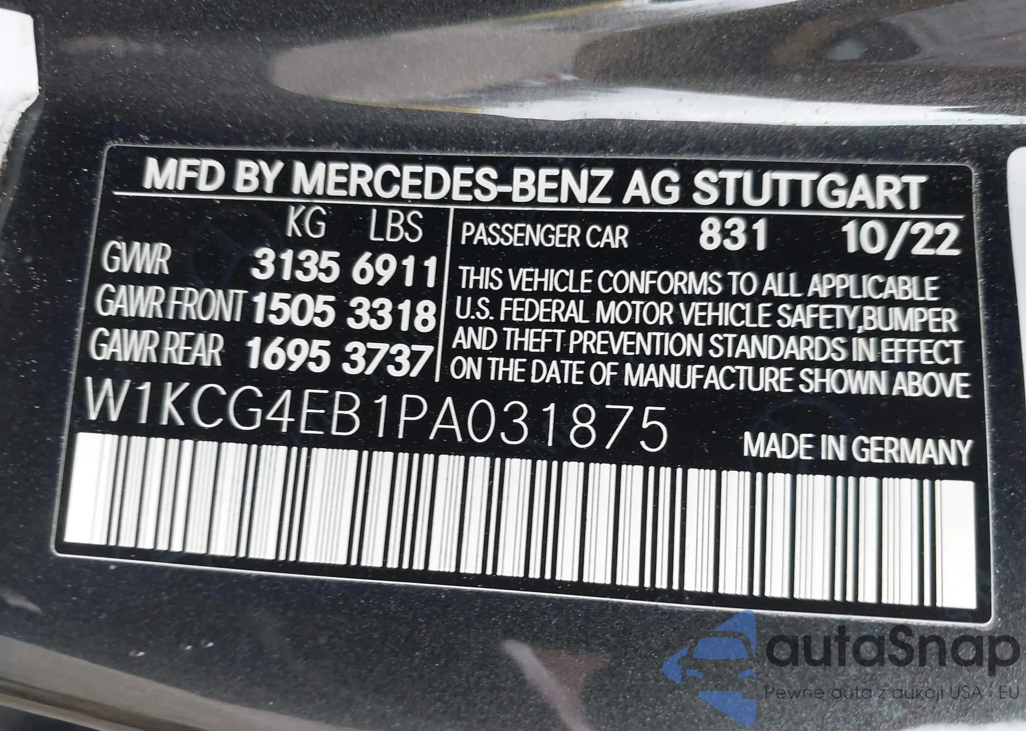 • VIN W1KCG4EB1PA031875