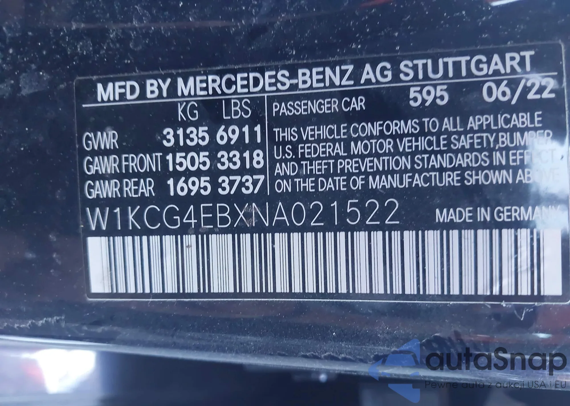 • VIN W1KCG4EBXNA021522